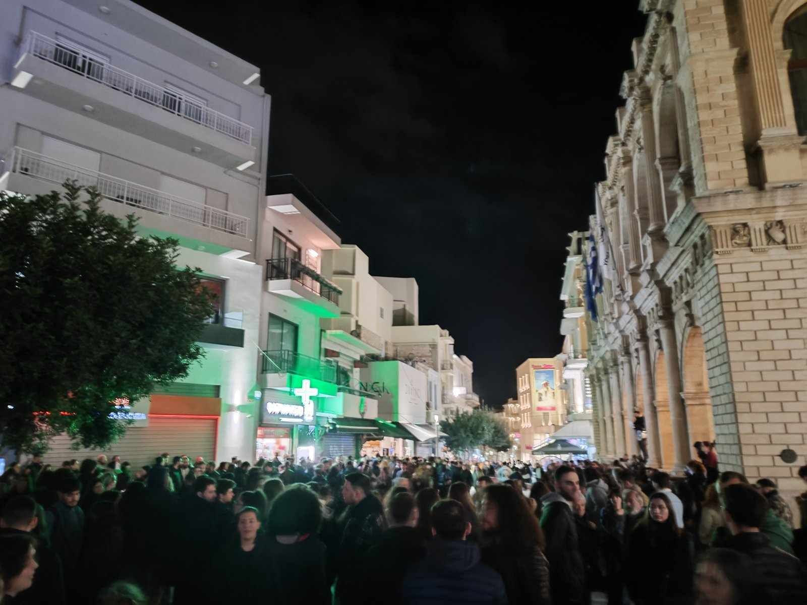 Χιλιάδες είναι οι Ηρακλειώτες που κατέκλυσαν το κέντρο της πόλης το απόγευμα της Τετάρτης, απαιτώντας δικαιοσύνη για τα θύματα των Τεμπών.