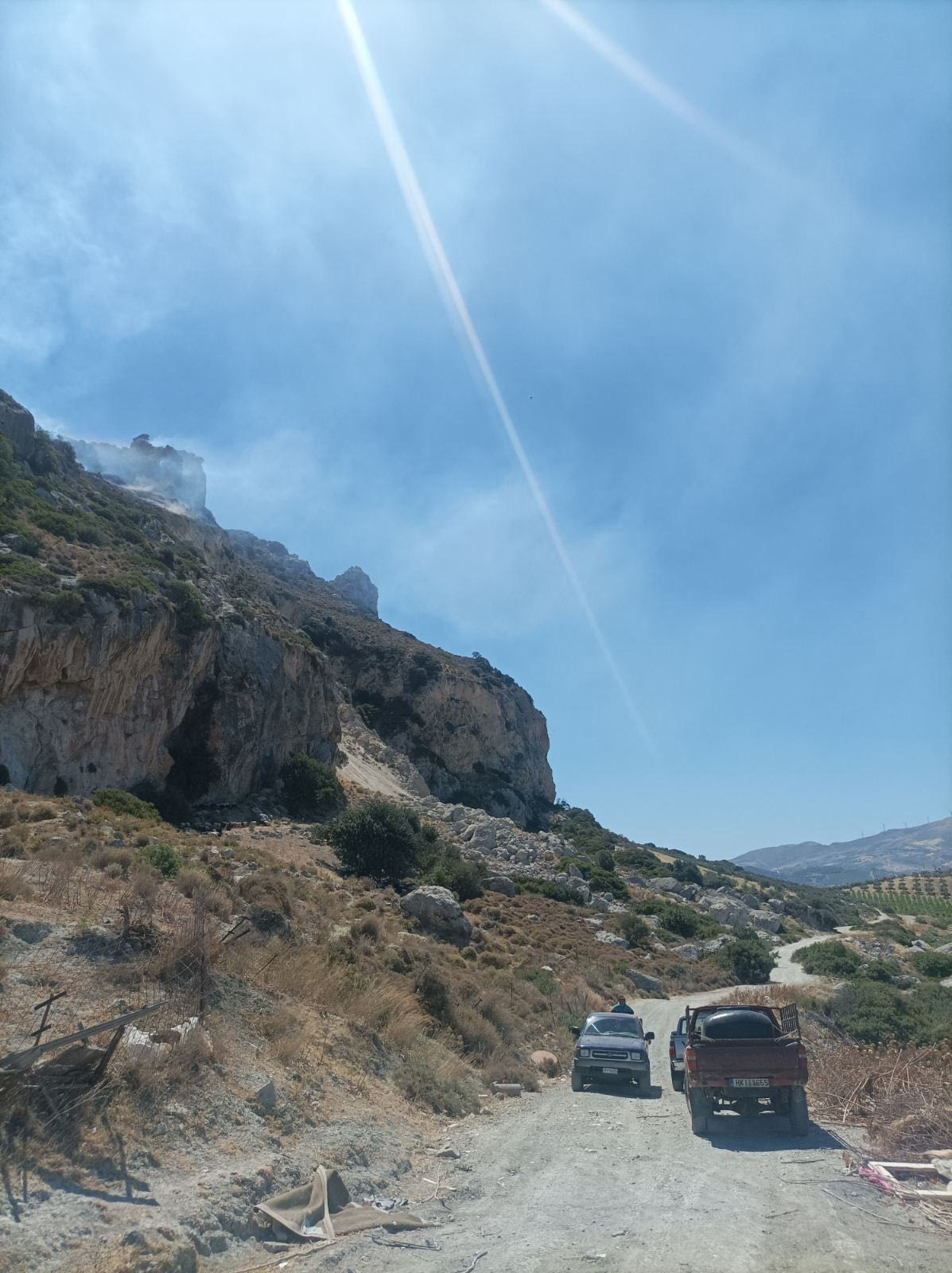 Νωρίς το μεσημέρι της Δευτέρας ήχησε το 112 όπου μέσω του μηνύματος καλούνται όσοι βρίσκονται στην περιοχή να απομακρυνθούν προς το Ηράκλειο.