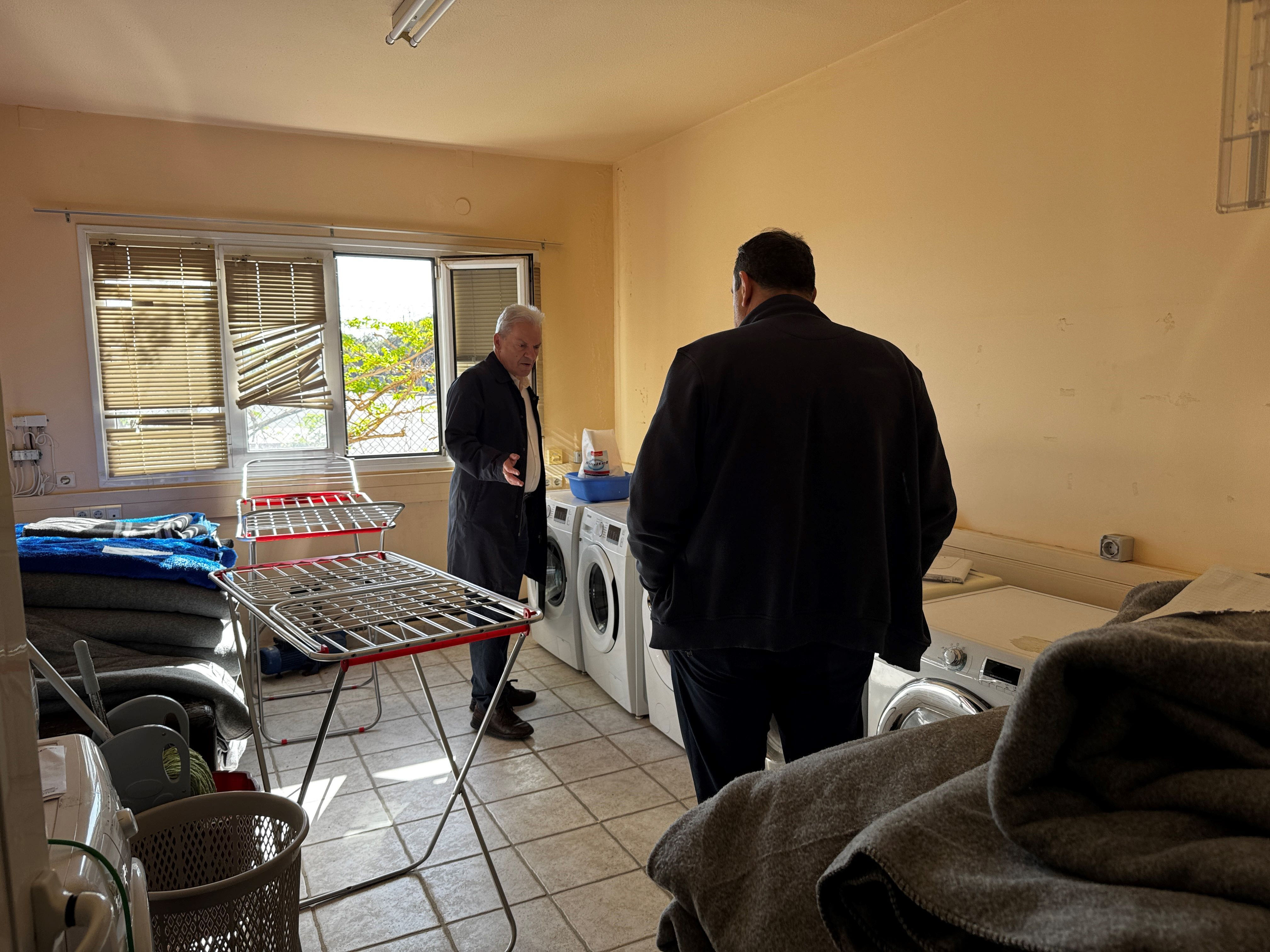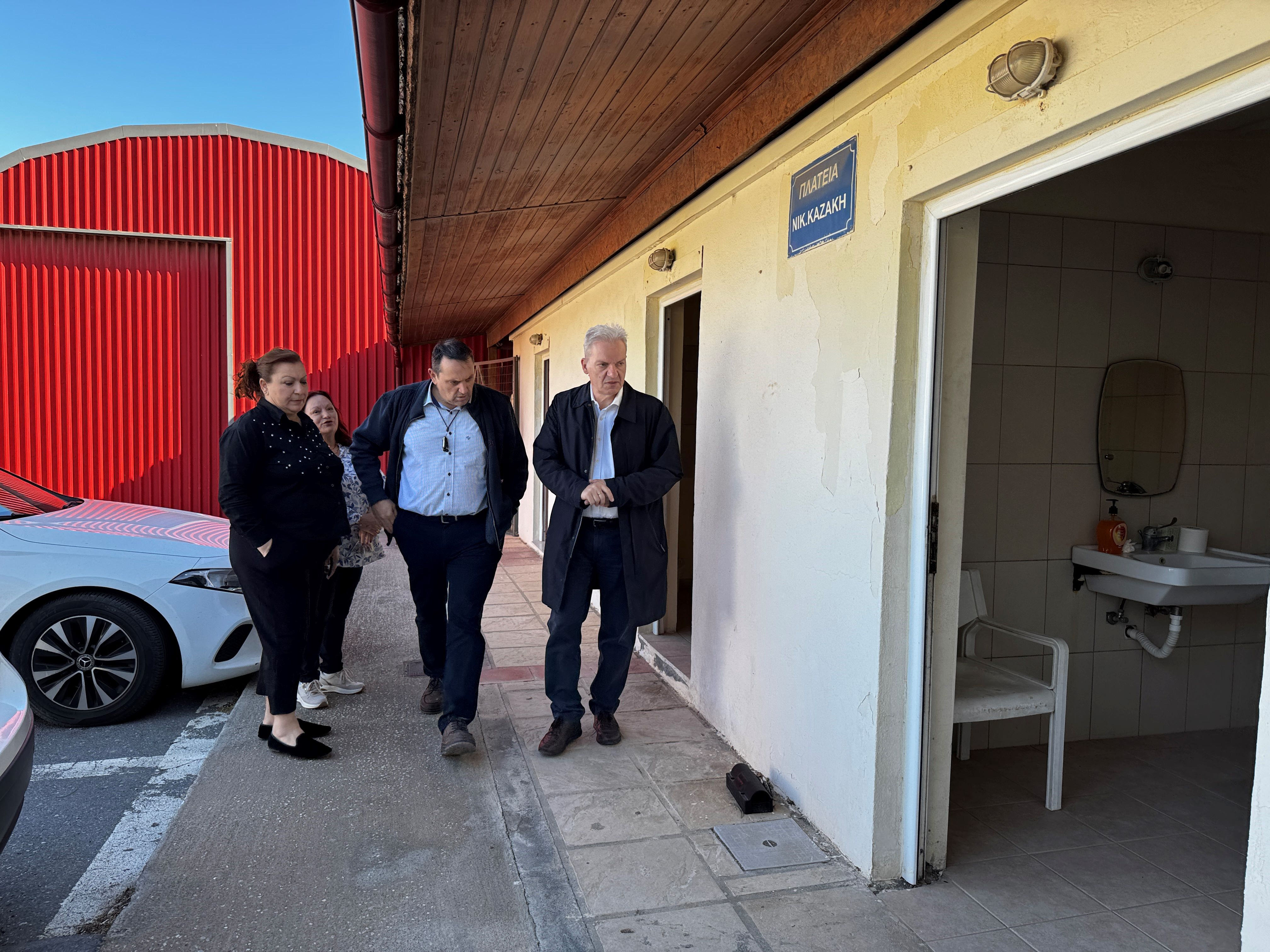 Το Κέντρο Έκτακτης Ανάγκης του Δήμου Ηρακλείου, το οποίο ξεκίνησε την καθημερινή λειτουργία του προσφέροντας σε άστεγους συμπολίτες μας υπηρεσίες προσωπικής υγιεινής, πλυντηρίου, σίτισης, νοσηλευτικές υπηρεσίες, συμβουλευτικής υποστήριξης και χρήσης υπνωτηρίου, επισκέφθηκε ο Δήμαρχος Ηρακλείου Αλέξης Καλοκαιρινός και ο Αντιδήμαρχος Κοινωνικής Μέριμνας Γιώργος Τσαγκαράκης το πρωί της Παρασκευής 28/3.