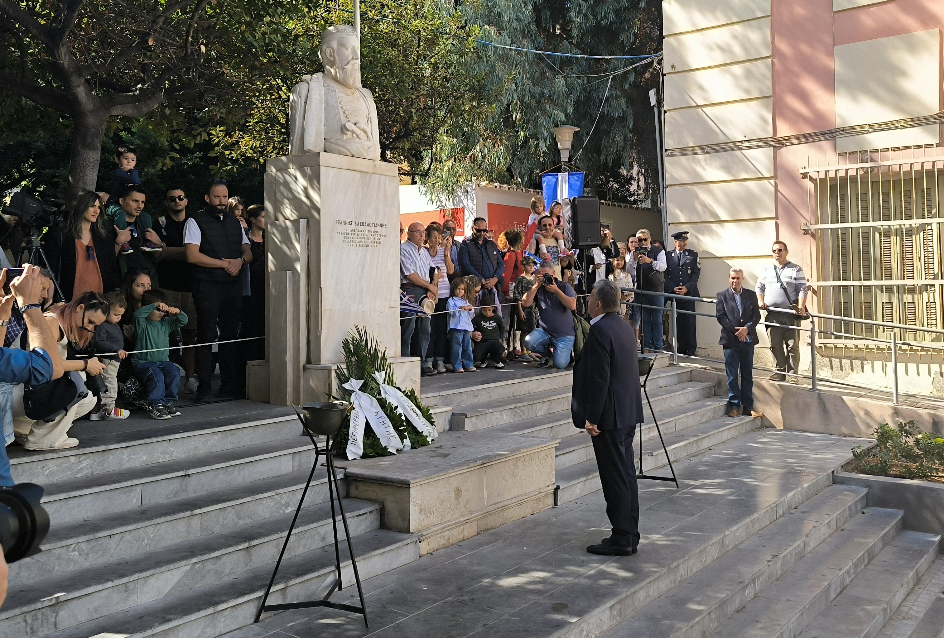 Ακολούθησε τελετή στο άγαλμα Δασκαλογιάννη όπου τελέστηκε επιμνημόσυνη δέηση από τον Σεβασμιότατο Αρχιεπίσκοπο Κρήτης κ. Ευγένιο και κατάθεση στεφάνων από την εκπρόσωπο της Κυβέρνησης τη Γενική Γραμματέα Σύγχρονου Πολιτισμού κ. Ελένη Δουνδουλάκη, τους βουλευτές Ηρακλείου Μάξιμο Σενετάκη, Χάρη Μαμουλάκη, Φραγκίσκο Παρασύρη, Λευτέρη Αυγενάκη, τον Περιφερειάρχη Κρήτης Σταύρο Αρναουτάκη, τον Δήμαρχο Ηρακλείου Αλέξη Καλοκαιρινό, τον Ανώτερο Διοικητή Φρουράς Ηρακλείου ως εκπρόσωπος των Ενόπλων Δυνάμεων και των Σωμάτων Ασφαλείας, Εκπαιδευτικών Ιδρυμάτων, κομμάτων, Αποστράτων Σωμάτων Ασφαλείας, εκπροσώπους φορέων, αντιστασιακών οργανώσεων και θυμάτων πολέμου.