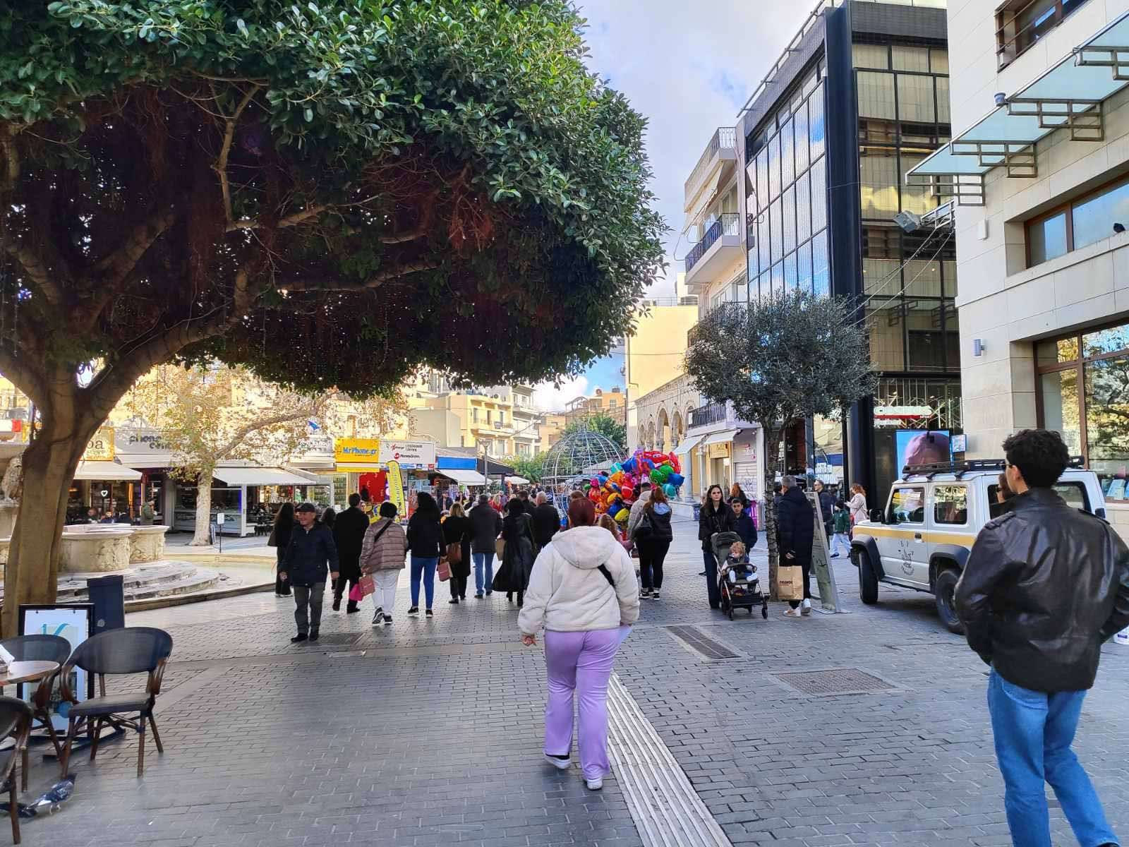 Με ελάχιστες βροχοπτώσεις και για την εποχή με πολύ καλές καιρικές συνθήκες οι Ηρακλειώτες βρίσκονται από το πρωί της Τρίτης στα καταστήματα της πόλης για τις αγορές της τελευταίας στιγμής.