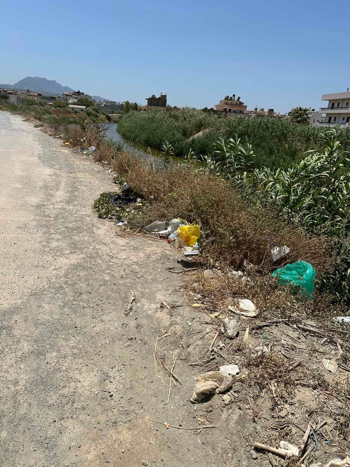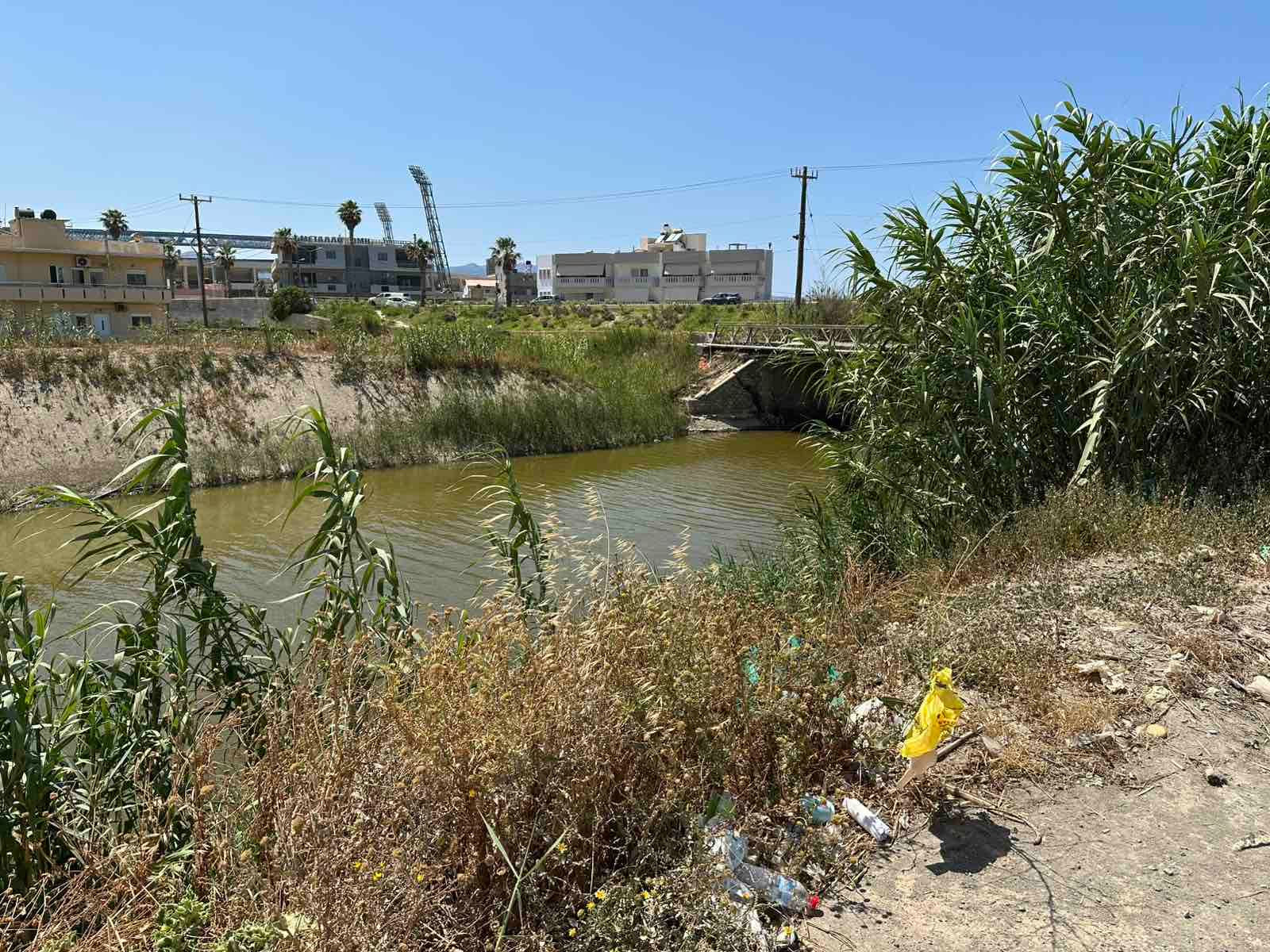 Πριν λίγους μήνες είχε ξεκινήσει καθαρισμός στα οικόπεδα γύρω από τον ποταμό, όμως, όπως φαίνεται στις φωτογραφίες, το έργο έμεινε στη μέση και δεν ολοκληρώθηκε.