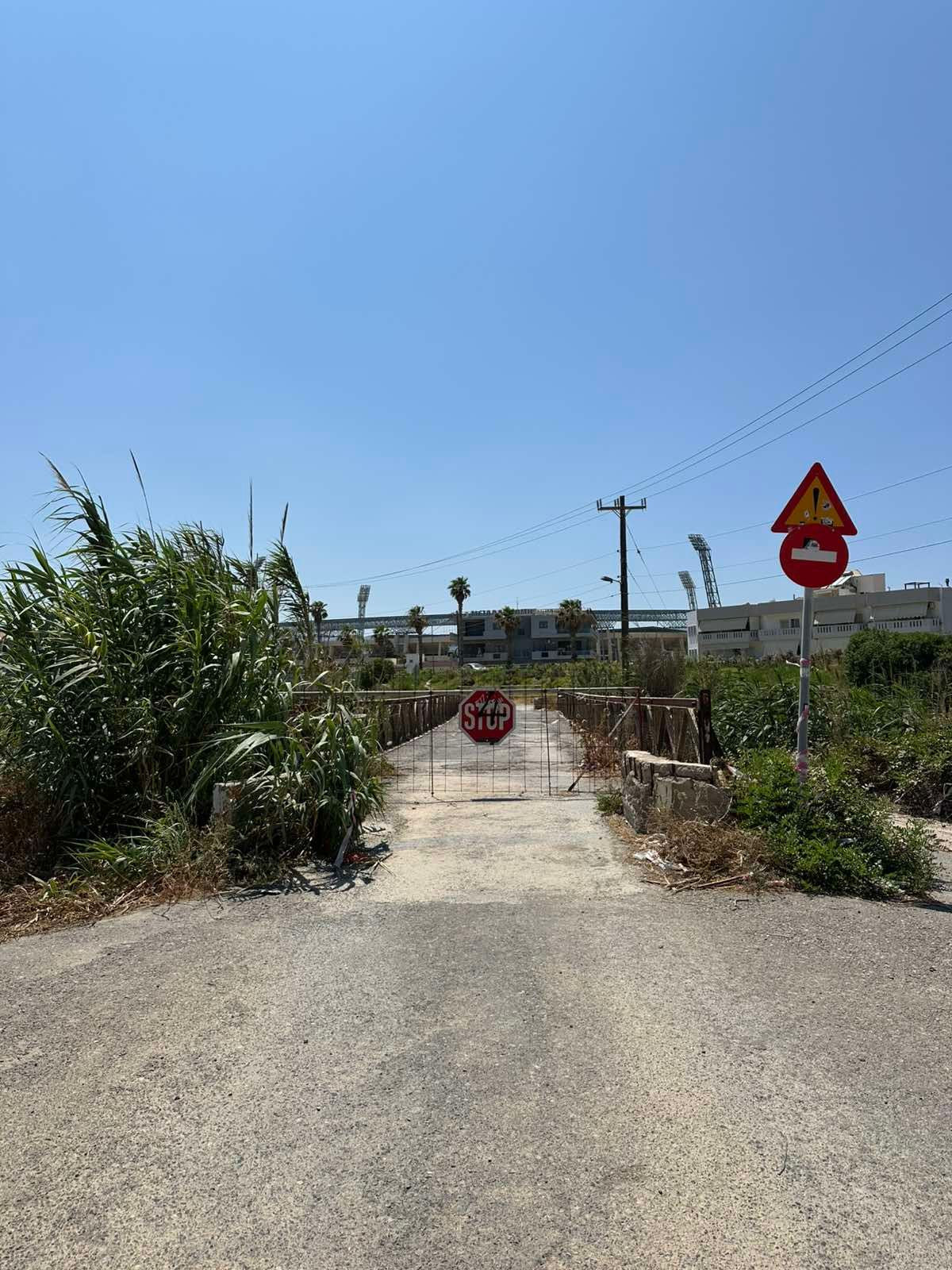 Εικόνα παρουσιάζει ο ποταμός Γιόφυρος, με σκουπίδια διάσπαρτα στις όχθες και χόρτα που έχουν ξεφύγει. Ο δρόμος δίπλα στον ποταμό είναι χωματόδρομος, γεμάτος λακκούβες και σκόνη, κάνοντας τη διέλευση των οχημάτων δύσκολη και επικίνδυνη.