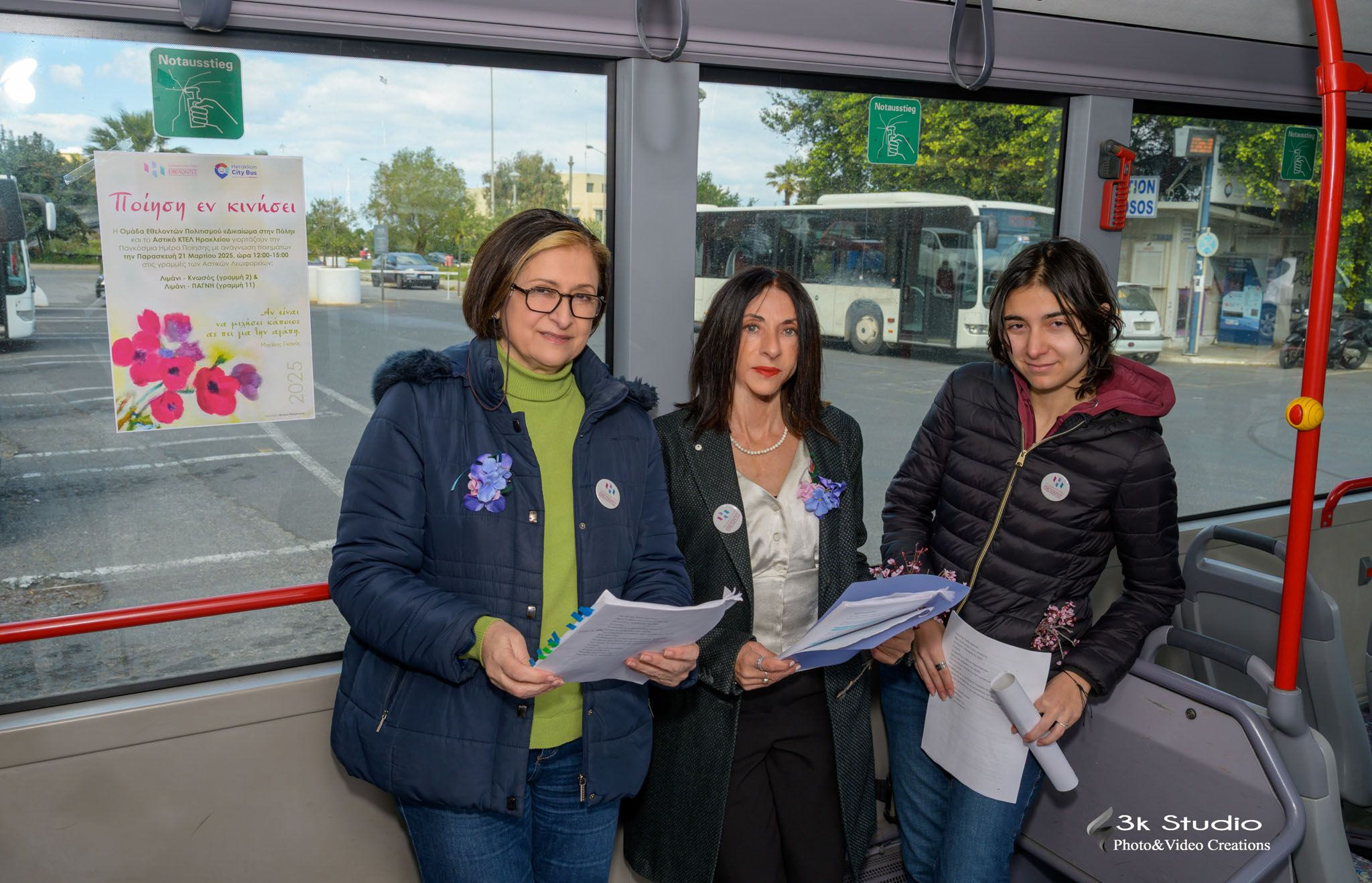 Η Εθελοντική Ομάδα Πολιτισμού της Παράταξης «Δικαίωμα στην Πόλη» σε συνεργασία με το Αστικό ΚΤΕΛ Ηρακλείου ανανέωσε το ραντεβού της και φέτος με τους επιβάτες των αστικών λεωφορείων με αφορμή την Παγκόσμια Ημέρα Ποίησης στις 21 Μαρτίου.