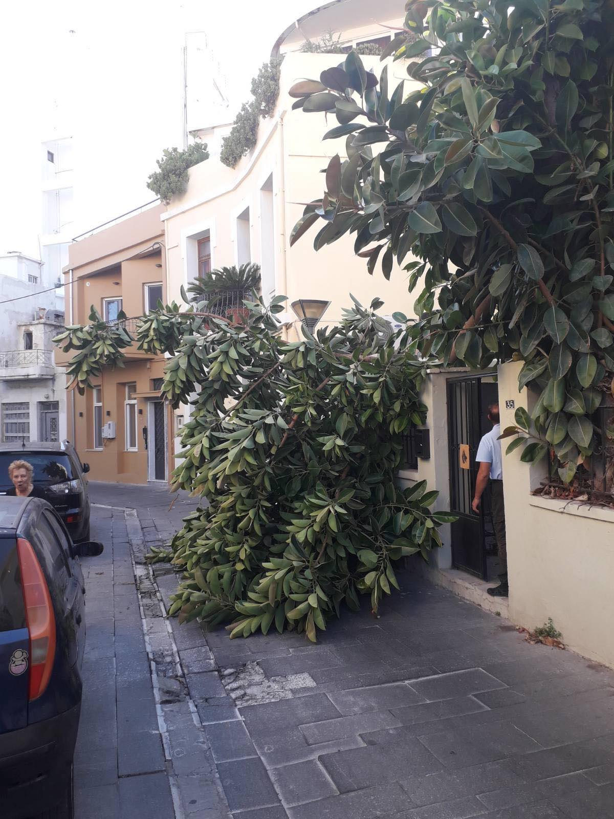 Πρωινό Παρασκευής στο Ηράκλειο και καταγράφηκε ακόμα μία πτώση δένδρου, αυτή τη φορά σε ιδιωτικό οικόπεδο, στην οδό Ταξιάρχου Μαρκοπούλου 35.