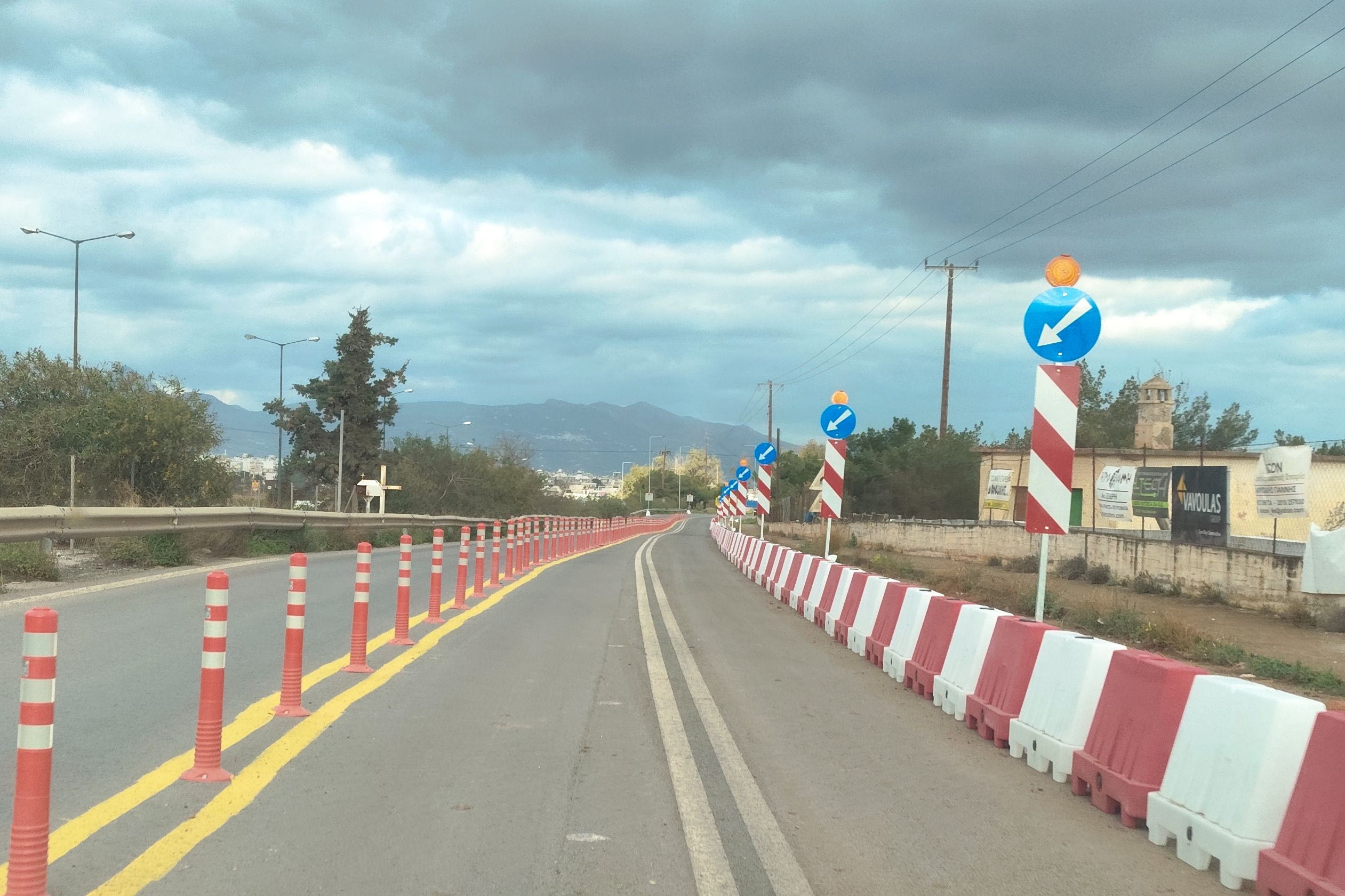 Η Παλαιά Εθνική οδός σε ένα κομμάτι της “στενεύει” για να φτιαχτεί ασφαλής πεζή διαδρομή μέχρι την είσοδο του νέου εμπορικού πάρκου και για το σκοπό αυτό έχουν τοποθετηθεί πλαστικά κολωνάκια νοτιότερα από την παλιότερη μέση γραμμή του δρόμου. Πληροφορίες αναφέρουν ότι εκκρεμεί αίτημα για τη δημιουργία κυκλικού κόμβου στο ύψος της συγκεκριμένης διασταύρωσης στα ανατολικά του σημείου αυτού.