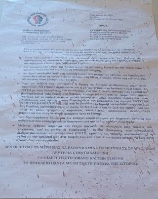Στο σημείο βρέθηκε το παρακάτω έγγραφο ενώ για την υπόθεση έχει ενημερωθεί η Αστυνομική Διεύθυνση Ηρακλείου.