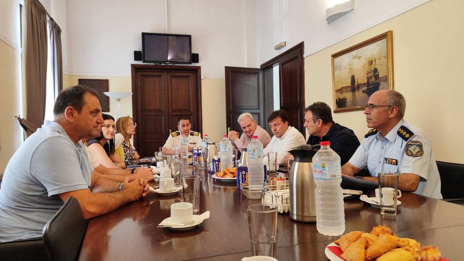 Με πρωτοβουλία του Λιμενικού Σώματος ξεκίνησε λίγο μετά τις 10 το πρωί σύσκεψη στα γραφεία της Αποκεντρωμένης Διοίκησης.