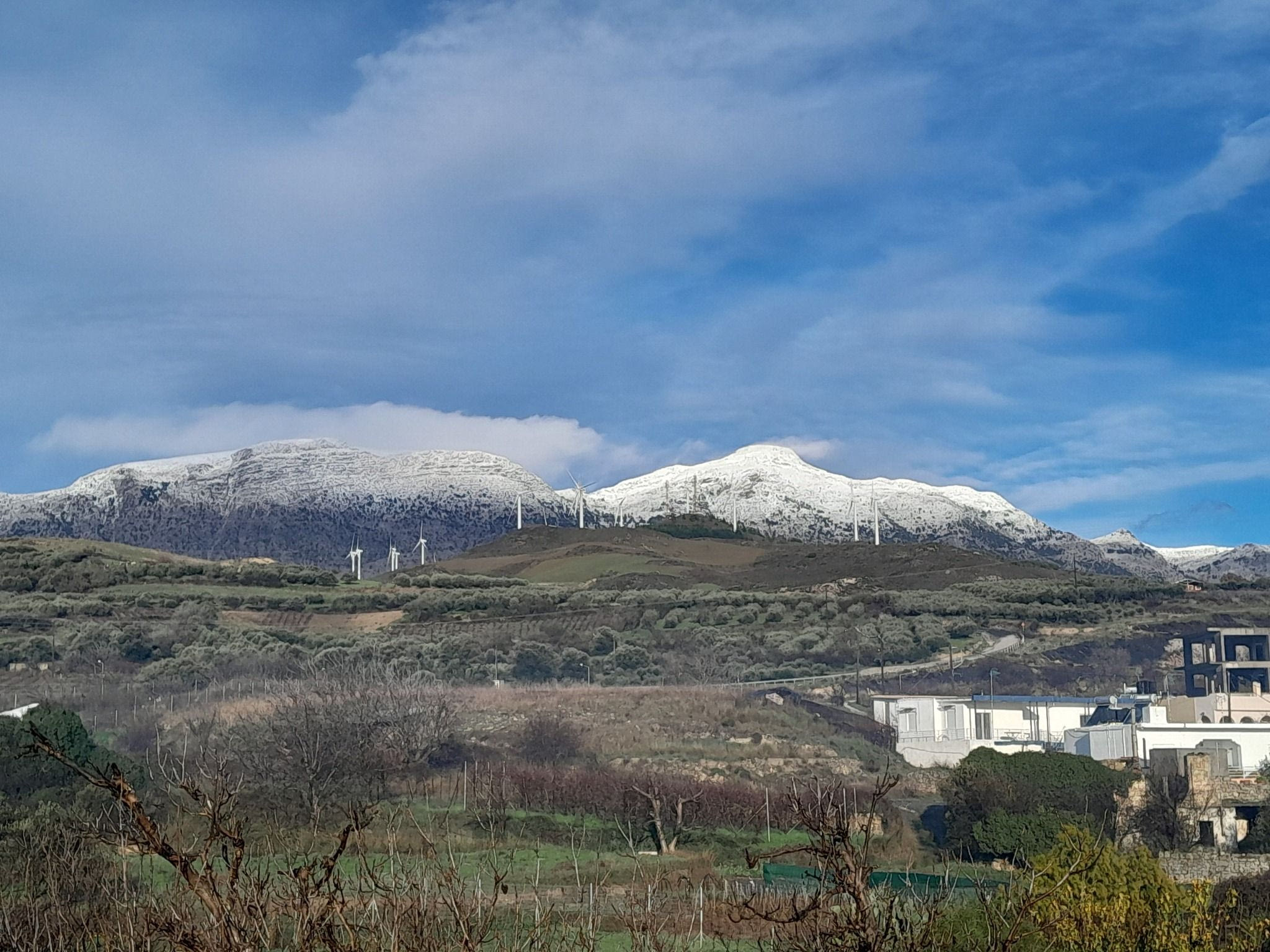 Τα πρώτα χιόνια έπεσαν στα βουνά της Κρήτης με τους κατοίκους των ορεινών περιοχών να ξυπνούν ανήμερα των Χριστουγέννων και να αντικρίζουν το λευκό τοπίο.