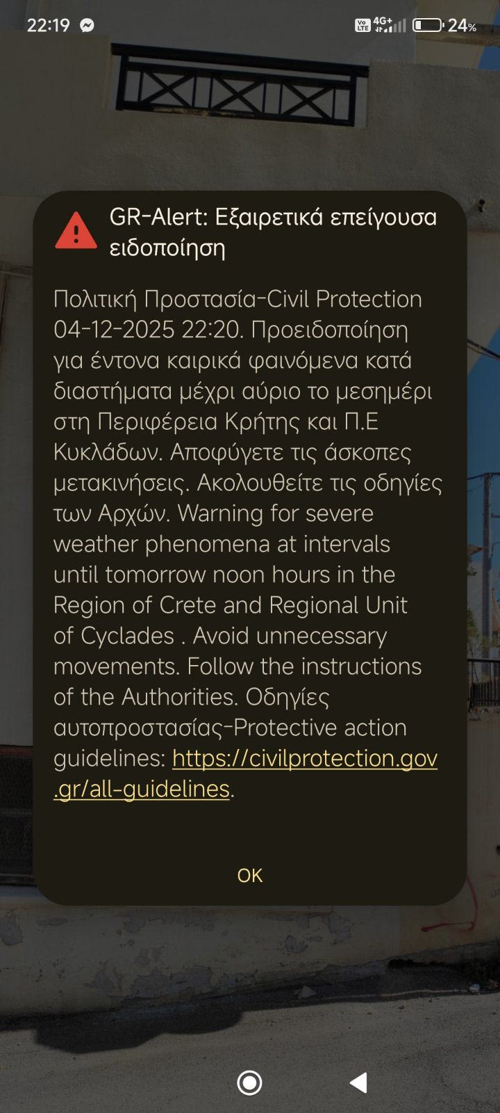 Να σημειωθεί ότι αντίστοιχα μηνύματα έλαβαν και οι κάτοικοι σε Κυκλάδες, Μαγνησία, Λάρισα, Σποράδες, Χίο, Σάμο, Ικαρία, Δωδεκάνησα, Εύβοια.