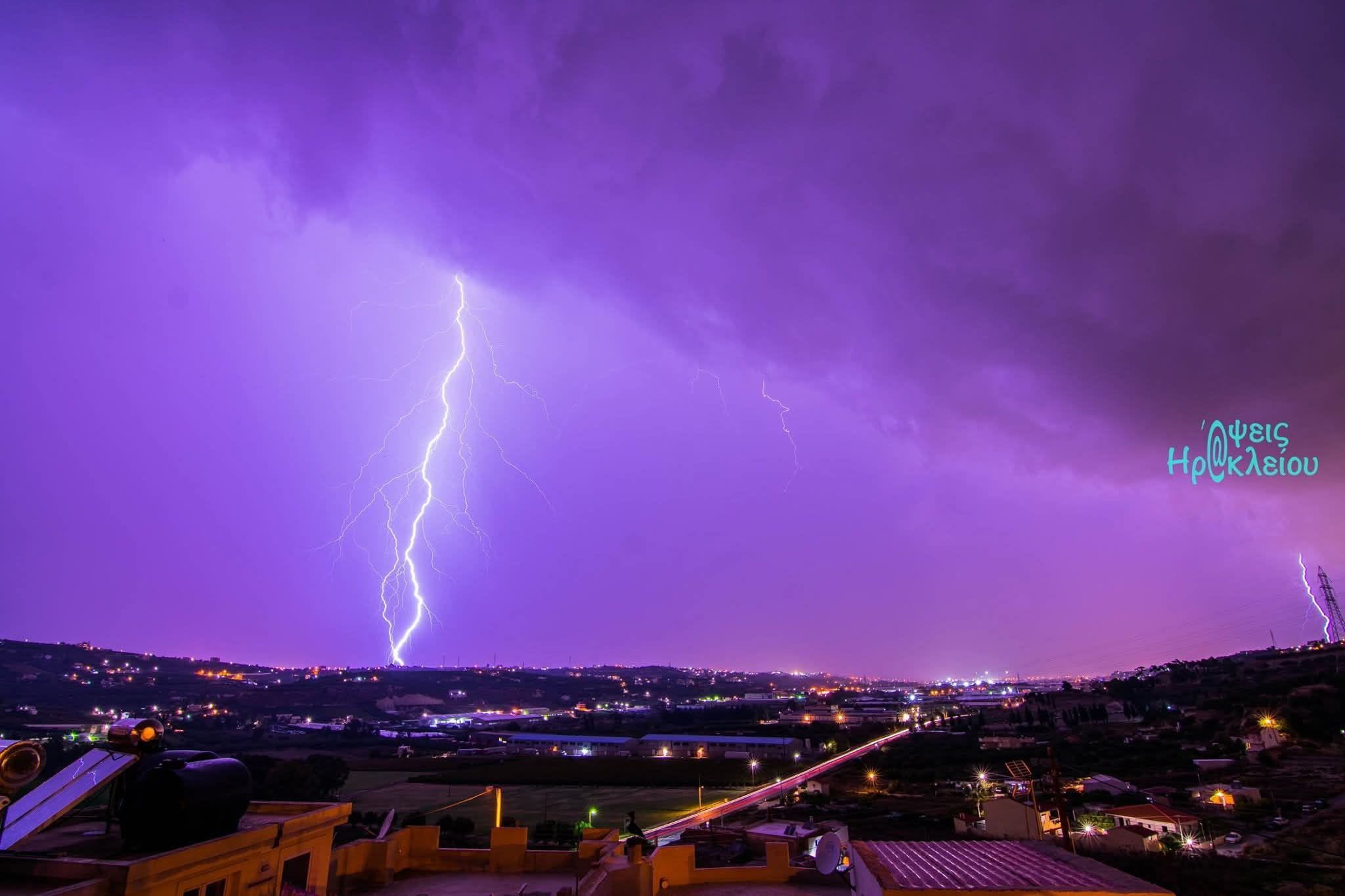 Πολλές καταιγίδες και στο Ηράκλειο τη νύχτα (Φωτό Οψεις Ηρακλείου)