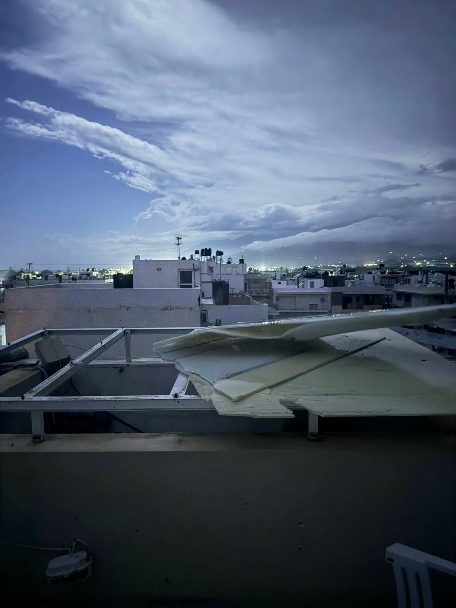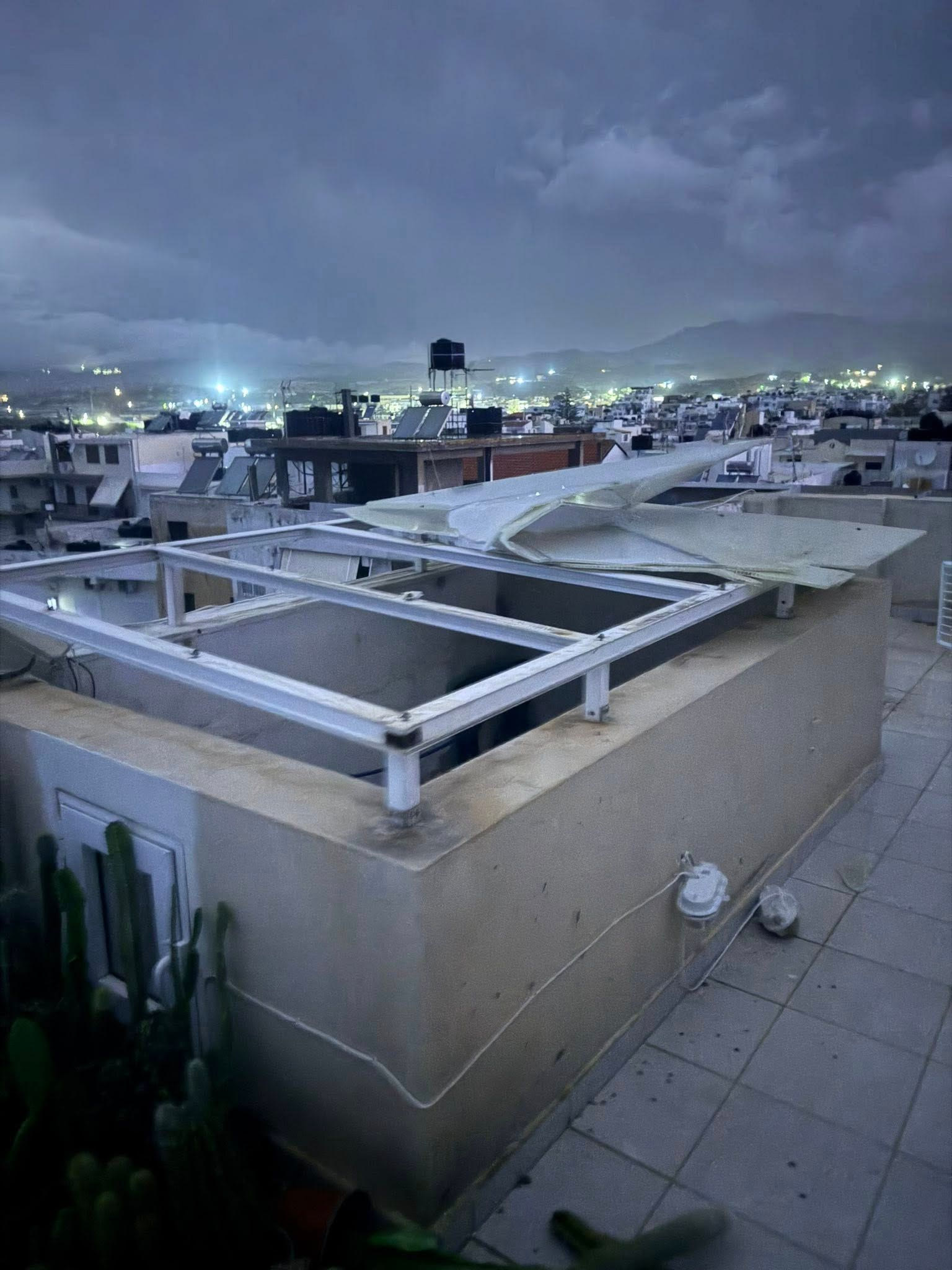 Στην Ιεράπετρα μάλιστα, όπως αναφέρουν οι Μετεωκρήτες, το πέρασμα της λαίλαπας καταιγίδων ήταν τρομακτικό. Οι ισχυροί άνεμοι ξήλωσαν ολόκληρο το ελενίτ του φωταγωγού στον 4ο όροφο πολυκατοικίας, όπως αποτυπώνεται στις φωτογραφίες.
