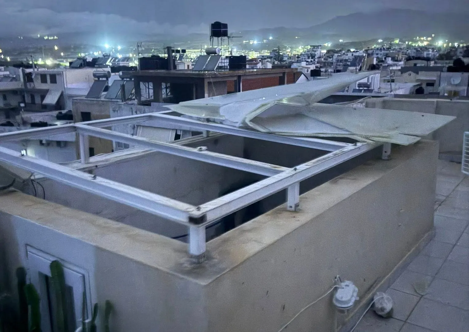 Οι δυνατοί άνεμοι “ξήλωσαν” ελενίτ φωταγωγού στην Ιεράπετρα