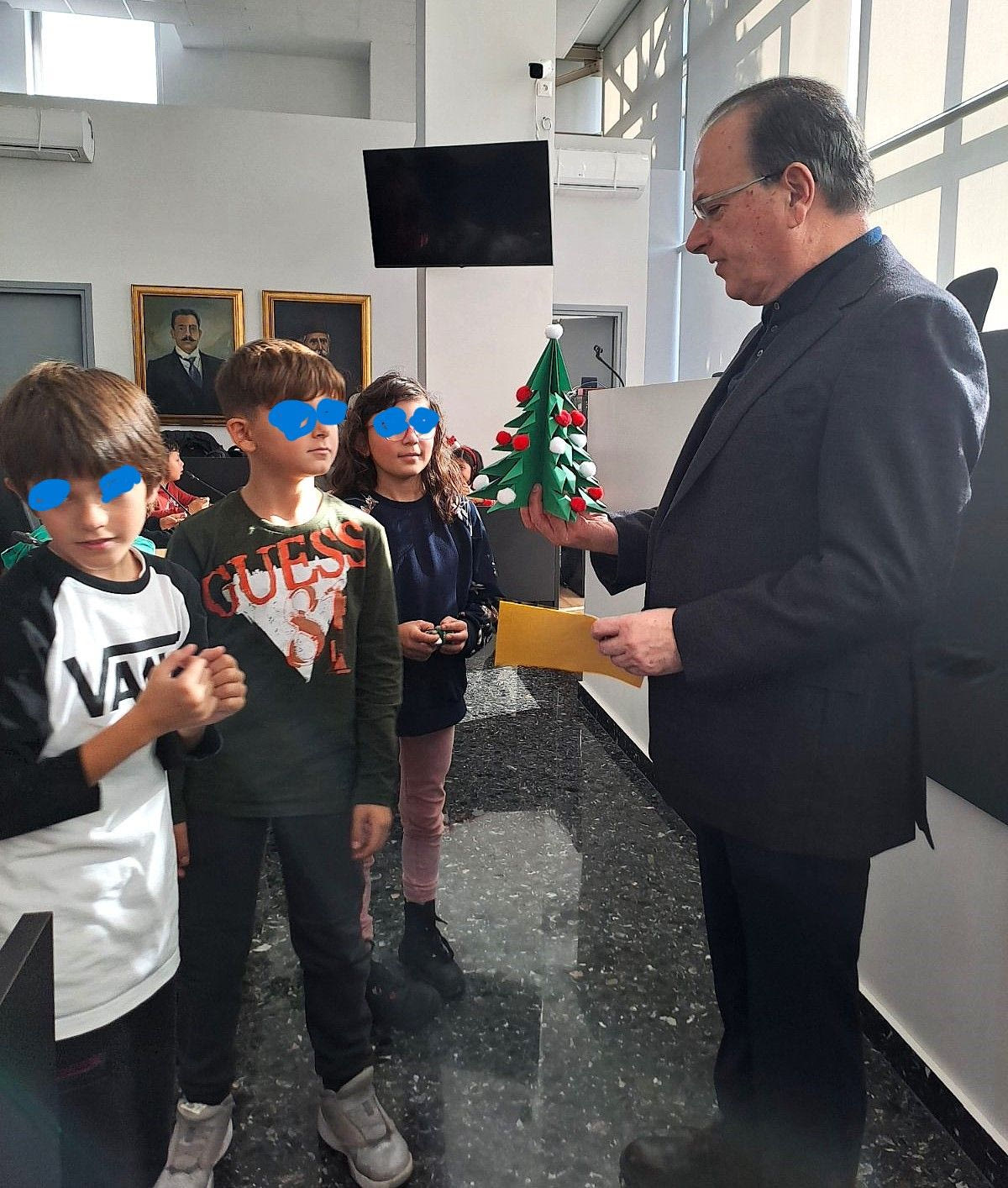 Ο κ. Δήμαρχος ευχαρίστησε θερμά τα παιδιά και τους εκπαιδευτικούς για την πολύ ευχάριστη επίσκεψη τους, αντάλλαξε μαζί τους δώρα και κεράσματα και ευχήθηκε σε ολόκληρη τη σχολική κοινότητα υγεία, συνεχή πρόοδο και προκοπή για τον καινούργιο χρόνο που έρχεται.