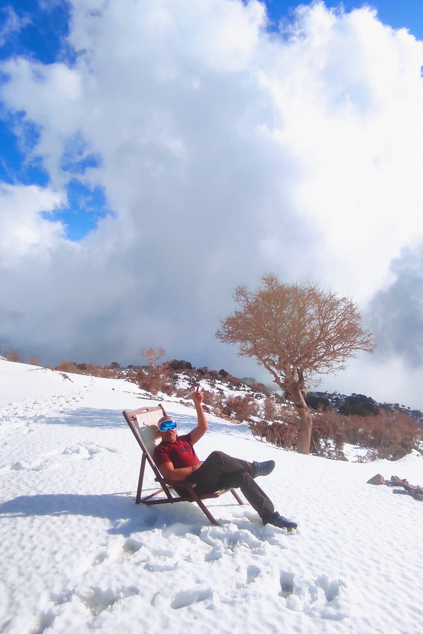 Το Σαββατοκύριακο κάποιοι, όπως ο Γιώργος Μαμάκης που ανέβασε την φωτογραφία, άραξαν και απόλαυσαν την «ζεστασιά» του παγωμένου βουνού.