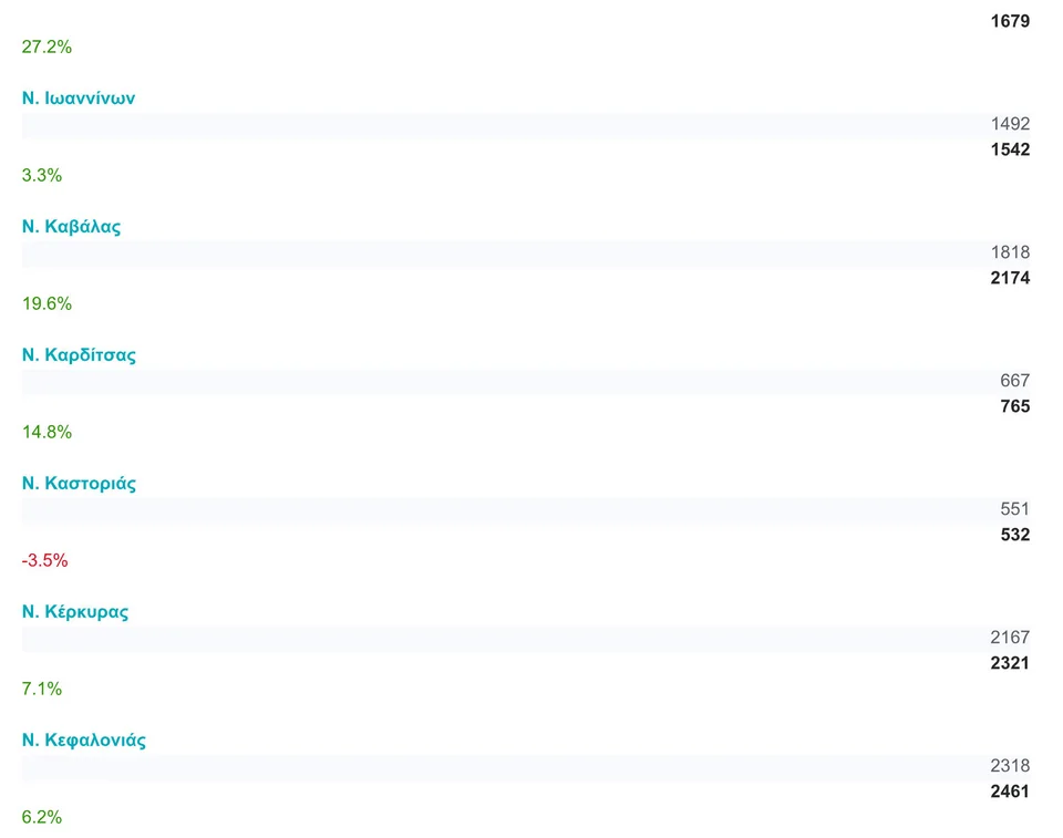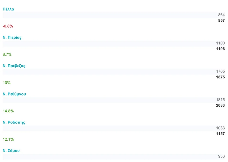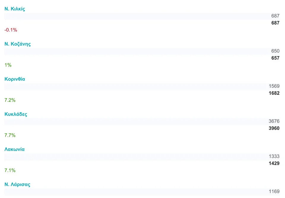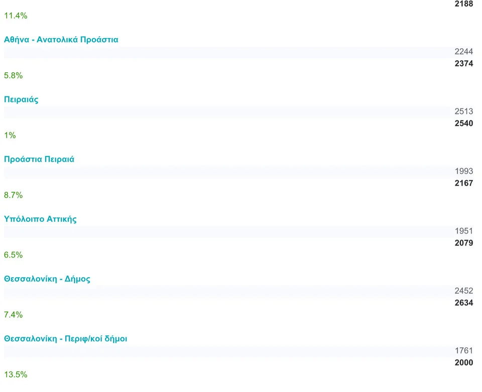 Ακόμα πιο ενδιαφέρον είναι το ότι η ταχύτητα αύξησης των τιμών δείχνει να μετατοπίζεται από τα μεγάλα αστικά κέντρα, στην περιφέρεια, όπου τα περιθώρια αυξήσεων είναι ακόμα μεγάλα. Σύμφωνα με τα στοιχεία του Spitogatos, στην Αθήνα οι τιμές «έτρεξαν» με 8%, στη Θεσσαλονίκη με 12,5% και στην υπόλοιπη Ελλάδα με 11,4%. Ειδικά όσον αφορά στο Λεκανοπέδιο της Αττικής, από περιοχή σε περιοχή οι αυξήσεις έχουν μεγάλες διακυμάνσεις. Για παράδειγμα, στο κέντρο της Αθήνας οι αυξήσεις είναι της τάξης του 9,4%, ενώ στον Πειραιά είναι μόλις 1%. Αξιοσημείωτο είναι πως ακόμα και στις περιοχές, που χαρακτηρίζονταν πιο «φιλικές» για την τσέπη, όπως τα Δυτικά Προάστια, οι τιμές «τρέχουν» με 11,4%!