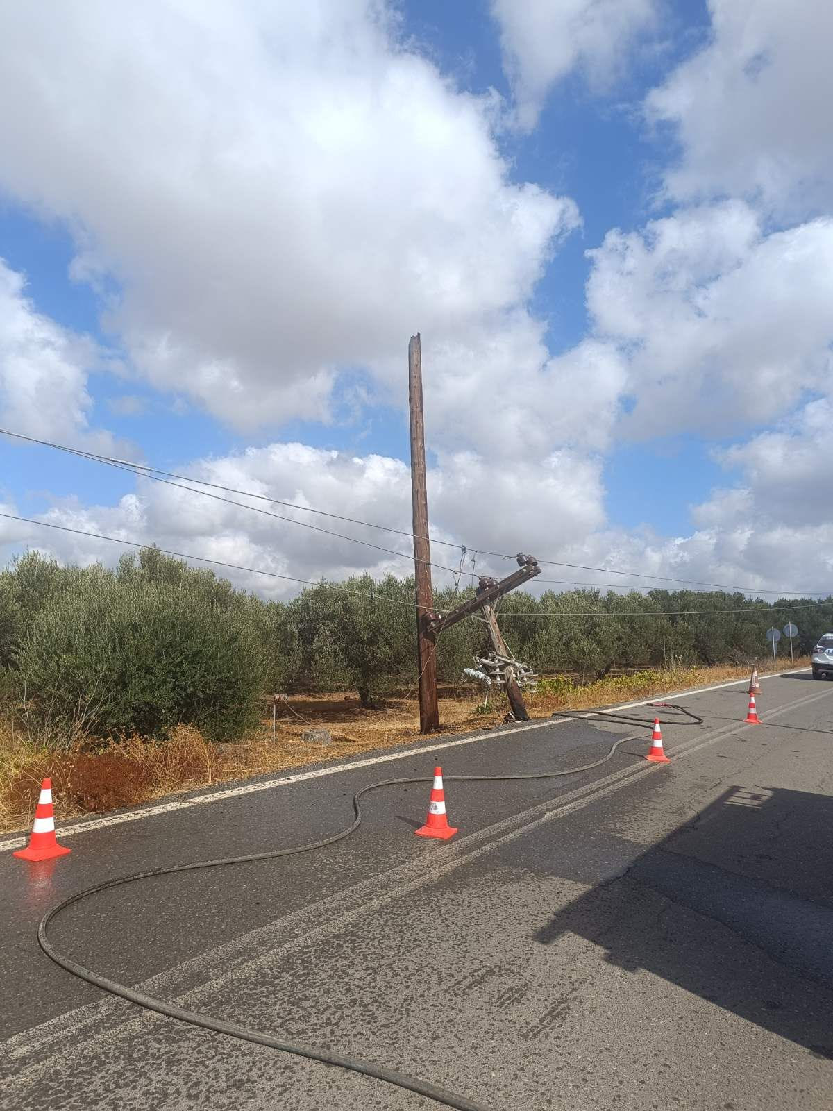 Στα δύο κόπηκε ο στύλος της ΔΕΗ που βλέπετε στις φωτογραφίες που έστειλε στο patris.gr, κάτοικος του Καστελίου.