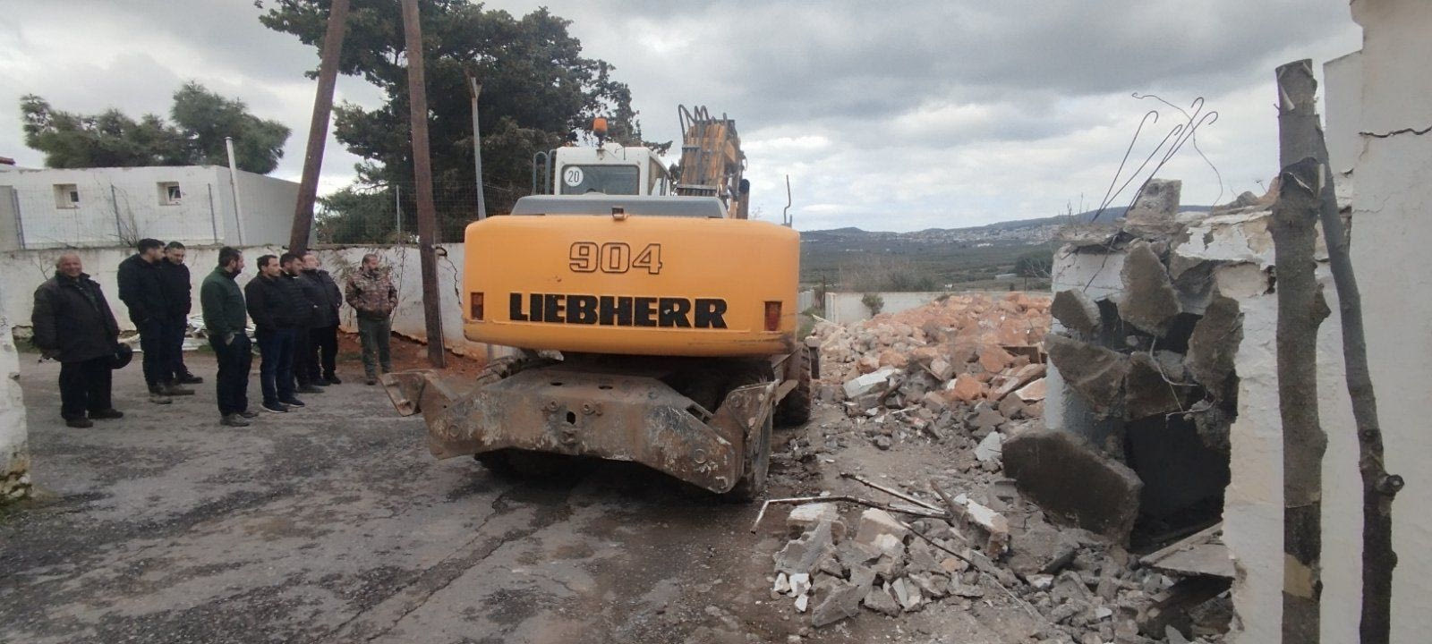 Στα Ρουσσοχώρια βρέθηκαν σήμερα ο Δήμαρχος Μινώα Πεδιάδας Βασίλης Κεγκέρογλου, ο Αντιπεριπεριφερειάρχης Νίκος Συριγωνάκης, οι Αντιδήμαρχοι Γιώργος Μελεμενής, Γιώργος Παπαδόπουλος και Στέφανος Ψυλλάκης, η Διευθύντρια Τεχνικών Έργων Π.Ε. Ηρακλείου Χαρά Τριαματάκη, το στέλεχος της Τεχνικής Υπηρεσίας και αρμόδιος για τις κατεδαφίσεις Στέλιος Τρουλλινός αλλά και κάτοικοι του χωριού που μαζί με τον ιδιοκτήτη του οικήματος που «έπεσε», παρακολούθησαν τη συγκεκριμένη διαδικασία.
