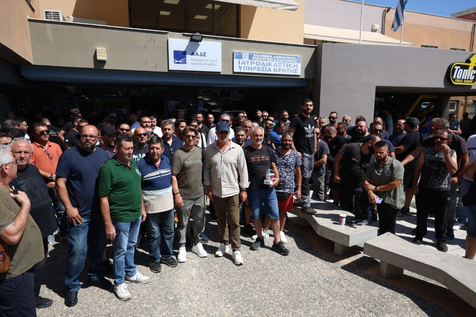 Σε συγκέντρωση διαμαρτυρίας έξω από τη ΔΟΥ Ηρακλείου και το συμβολικό κλείσιμο αυτής προχώρησαν το πρωί τα μέλη του Συνδέσμου Ιδιοκτητών Επισκευαστών Αμαξωμάτων Νομού Ηρακλείου (ΣΙΕΑΝΗ), σε συνεργασία με το Σύνδεσμο Ιδιοκτητών Συνεργείων Επισκευής Αυτοκινήτων Ηρακλείου (ΣΙΣΕΑΗ), το Σύνδεσμο Ηλεκτρολόγων Αυτοκινήτων Ν. Ηρακλείου (ΣΗΑΝΗ), το Σωματείο Επισκευαστών Οχημάτων και Μηχανουργών Μεσαράς (ΣΕΟΜΜ), το Σύνδεσμο Επισκευαστών Ελαστικών Ν. Ηρακλείου και το Σύλλογο Ιδιοκτητών Γραφείων Εκμισθώσεως Επιβατηγών Αυτοκινήτων και Δίκυκλων Ιδιωτικής Χρήσεως (ενοικιάσεων ΙΧ) «Ο ΗΝΙΟΧΟΣ».