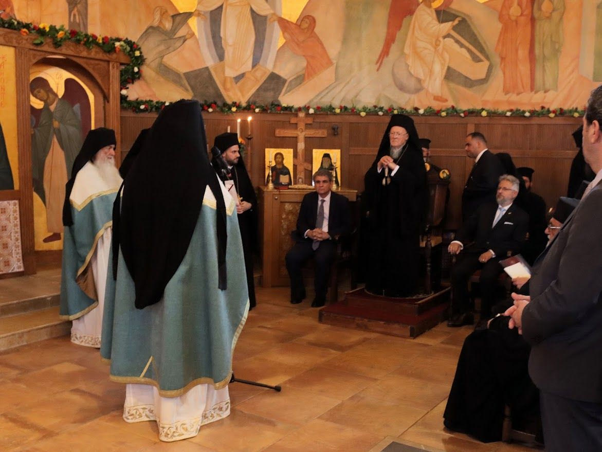 Μετά το πέρας της Θείας Λειτουργίας, ο Αρχιμανδρίτης Πέτρος απηύθυνε εγκάρδιους λόγους καλωσορίσματος προς την Αυτού Θειοτάτη Παναγιότητα και του προσέφερε δώρα ως ένδειξη βαθέος σεβασμού και ευγνωμοσύνης. Ανταποδίδοντας, ο Οικουμενικός Πατριάρχης απευθύνθηκε στους παρευρισκόμενους πιστούς στα ελληνικά και στα αγγλικά: «Η σημερινή ημέρα των εγκαινίων», ανέφερε ο Οικουμενικός Πατριάρχης Βαρθολομαίος, «είναι πράγματι μια ημέρα χαρμόσυνης μνήμης και ιστορικού εορτασμού. Είναι μια ημέρα που φέρνει σε ολοκλήρωση και καρποφορία έναν κύκλο προσδοκιών και ελπίδων». Πρόσφερε λόγους πνευματικής ενθάρρυνσης και δώρισε στον Ηγούμενο μια όμορφα φιλοτεχνημένη κανδήλα ως προσωπικό δώρο. Στη συνέχεια, η Αυτού Θειοτάτη Παναγιότης τέλεσε Τρισάγιο υπέρ αναπαύσεως της ψυχής του προσφάτως κοιμηθέντος, αοιδίμου Μητροπολίτου Αγκύρας κυρού Ιερεμίου.