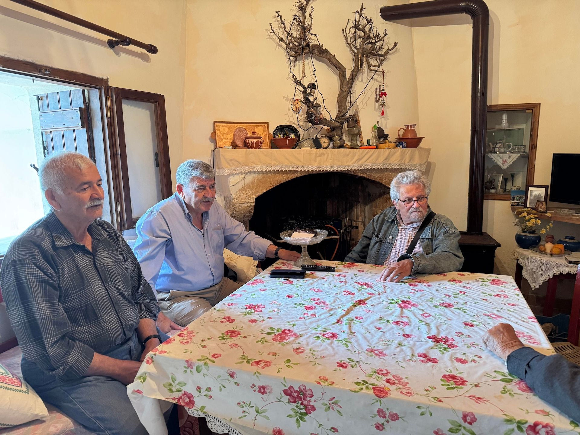 Βορίζια 2: Ο Γιάννης Φραγκιαδάκης, ή Νταντουλογιάννης, στο προαύλιο της εκκλησίας του Ευαγγελισμού διηγείται στον Μανόλη Παντινάκη και την Ελίνα Φαρσάρη τις δραματικές στιγμές που προηγήθηκαν του ολοκαυτώματος των Βοριζίων