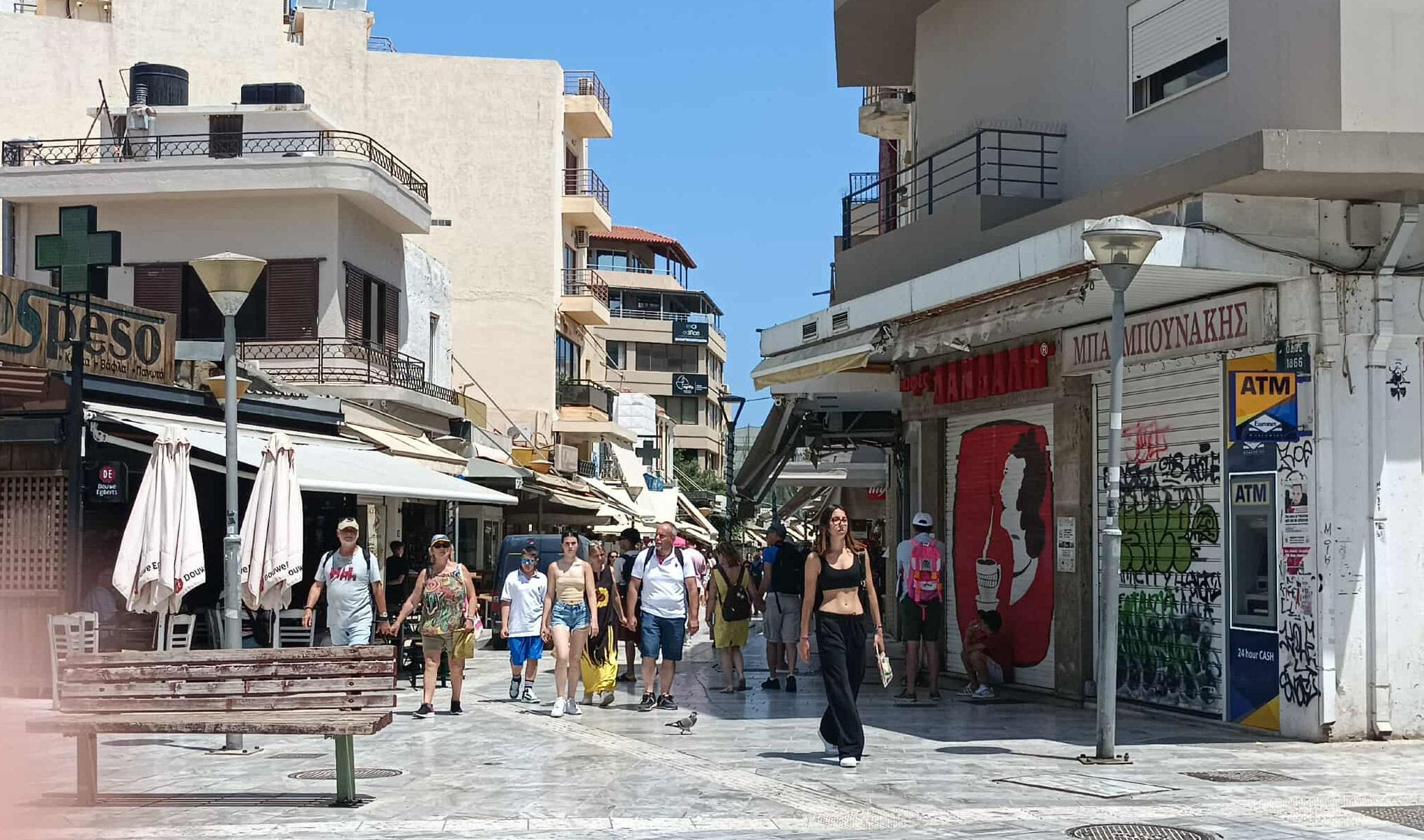 Μεσημέρι Κυριακής στο Καλοκαιρινό Ηράκλειο. Μια μέσα σχετικά δροσερή με τον αέρα όπως τη σημερινή που «στρίμωξε» πολλούς στους γειτονικούς από το Ηράκλειο κόλπους, καθώς οι καιρικές συνθήκες δεν επέτρεπαν το κολύμπι σε ανοιχτές θάλασσες, κάτι που επεσήμαιναν παντού εμφανώς οι κόκκινες σημαίες στους ναυαγοσωστικούς πύργους.