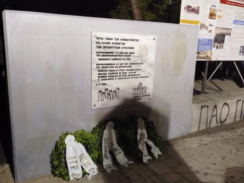Στεφάνια κατέθεσε εκ μέρους του ΚΚΕ η Λίνα Ανδρουλάκη, μέλος του Γραφείου της Τομεακής Επιτροπής Ηρακλείου, εκ μέρους της ΚΝΕ ο Ορφέας Δρακούλης, μέλος του Γραφείου Περιοχής της ΚΝΕ και εκ μέρους της ΠΕΑΕΑ – ΔΣΕ ο Γιάννης Μαράκης μέλος του ΔΣ του παραρτήματος Ηρακλείου.
