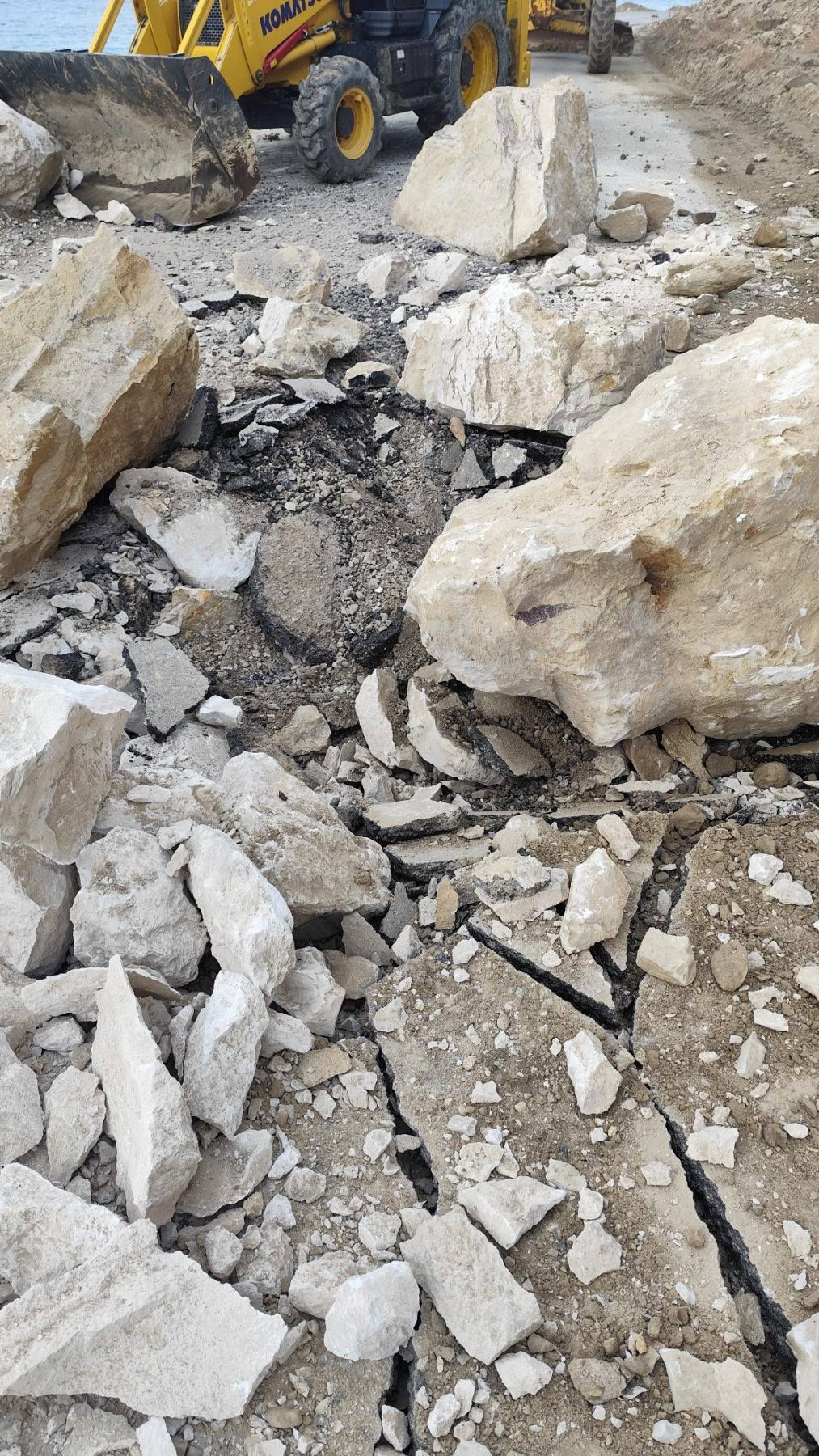 Στο οδόστρωμα έχουν πέσει μεγάλοι βράχοι.