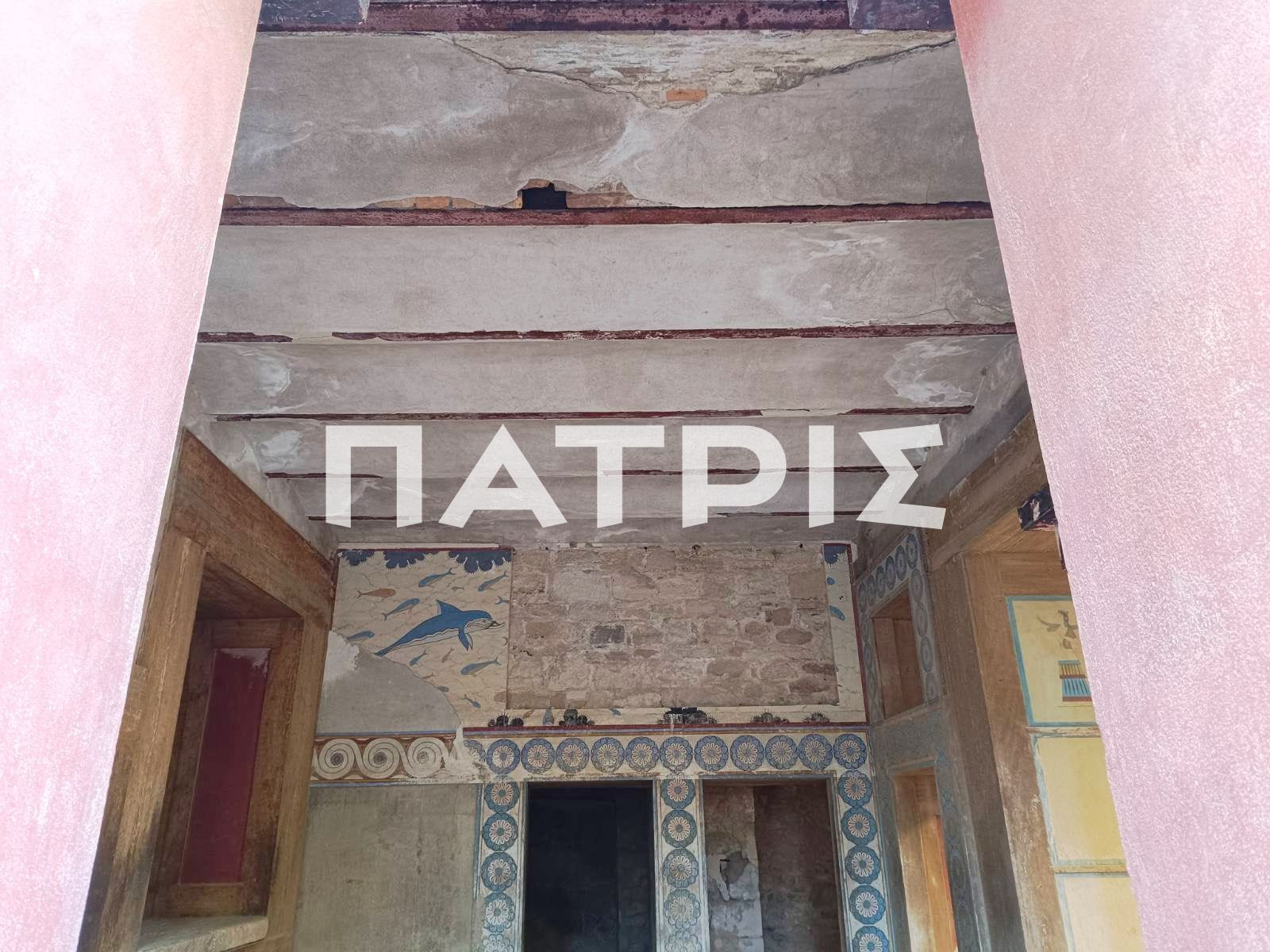 Οι θυελλώδεις άνεμοι υπήρξαν -σύμφωνα με τις σχετικές ανακοινώσεις του Υπουργείου Πολιτισμού- η αιτία για την αποκόλληση και καταστροφή του αντιγράφου της περίφημης “τοιχογραφίας των δελφινιών”. Οι άνεμοι ήταν οπωσδήποτε πολύ ισχυροί, ωστόσο οι εικόνες από την κατάσταση στην οποία βρίσκεται ο χώρος δημιουργούν έντονες επιφυλάξεις για την πραγματική αιτία της σημαντικής αυτής φθοράς.