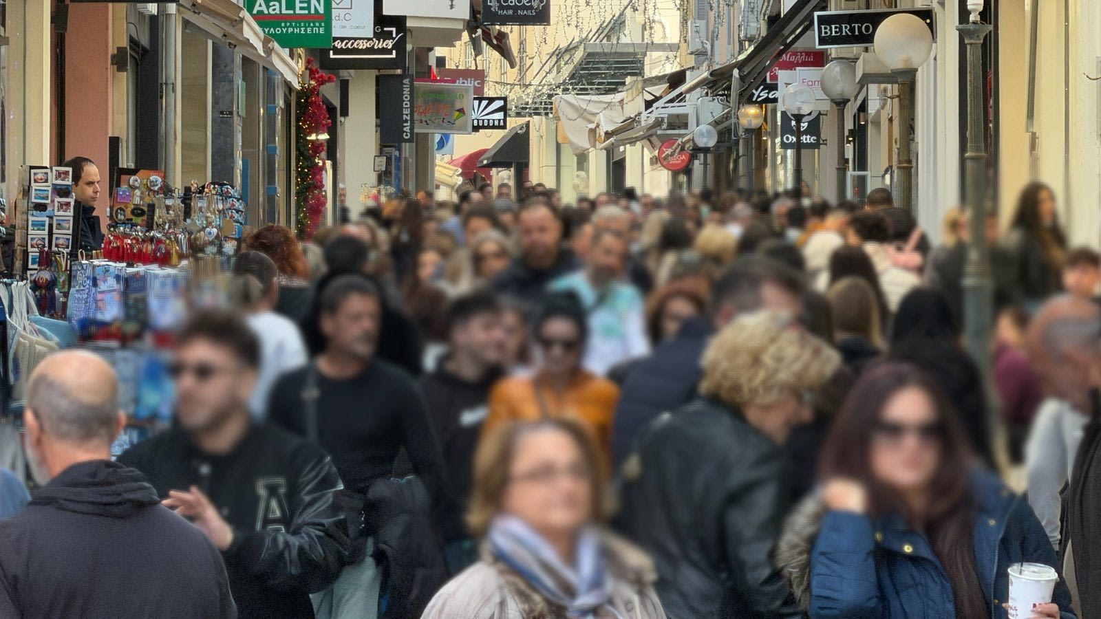 Το αδιαχώρητο σημειώθηκε την Κυριακή στο κέντρο του Ηρακλείου με εκατοντάδες πολίτες και επισκέπτες να κατεβαίνουν στους κεντρικούς δρόμους είτε για βόλτα είτε για τα τελευταία τους ψώνια.