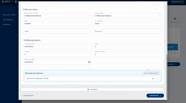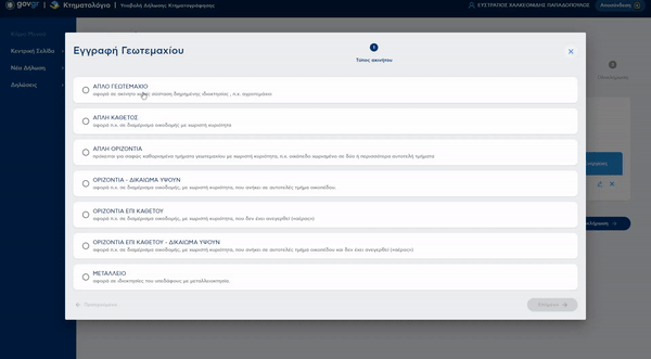 Μετά τον εντοπισμό του γεωτεμαχίου του στο χάρτη, ο χρήστης που επιθυμεί να προχωρήσει σε δήλωση της ιδιοκτησίας του, θα χρειαστεί να συμπληρώσει τη φόρμα της αίτησής του και να αναρτήσει στην εφαρμογή τα συνοδευτικά έγγραφα που τεκμηριώνουν την ιδιοκτησία του.