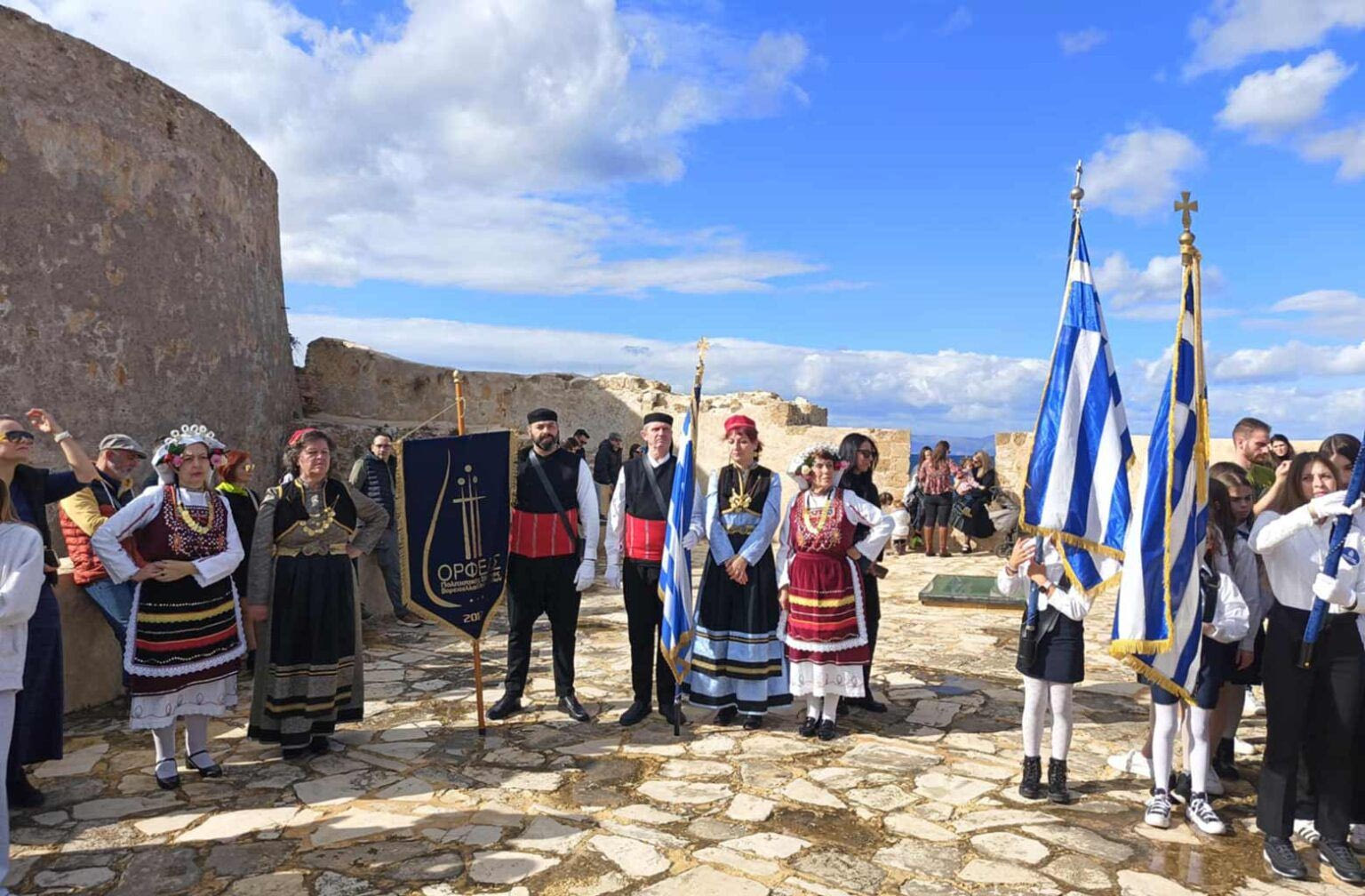 Ακολούθησε πομπή έως το Φρούριο Φιρκά όπου ο δήμαρχος Χανίων Παναγιώτης Σημανδηράκης πραγματοποίησε την κεντρική ομιλία και στη συνέχεια έγινε η έπαρση της σημαίας από τον Υπουργό Επικρατείας, τον Περιφερειάρχη Κρήτης, τον Αντιπεριφερειάρχη Κρήτης, τον Δήμαρχο Χανίων και τον Γενικό Διευθυντή του του Εθνικού Ιδρύματος Ερευνών και Μελετών «Ελευθέριος Κ. Βενιζέλος». Αμέσως μετά ο κ. Βορίδης ξεναγήθηκε στους χώρους του Ναυτικού Μουσείου Κρήτης.