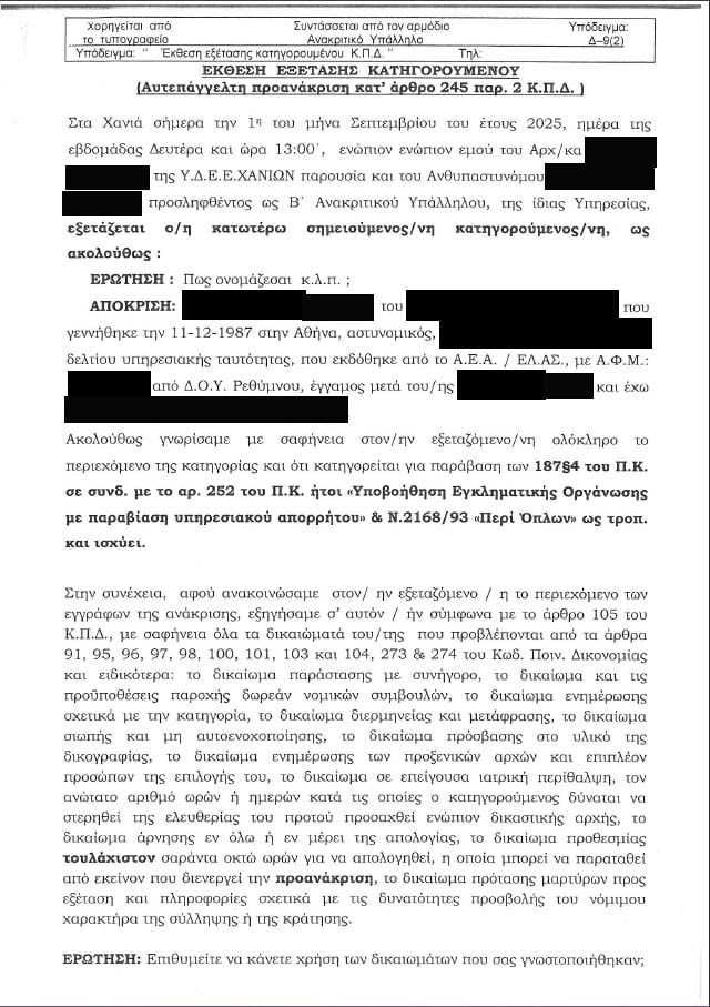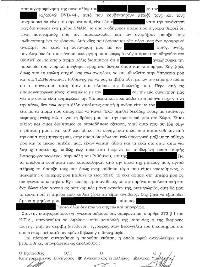 Το e5.gr δημοσίευσε την απολογία του αστυνομικού ενώπιον των αρμόδιων αρχών κατά τη σύλληψή του.