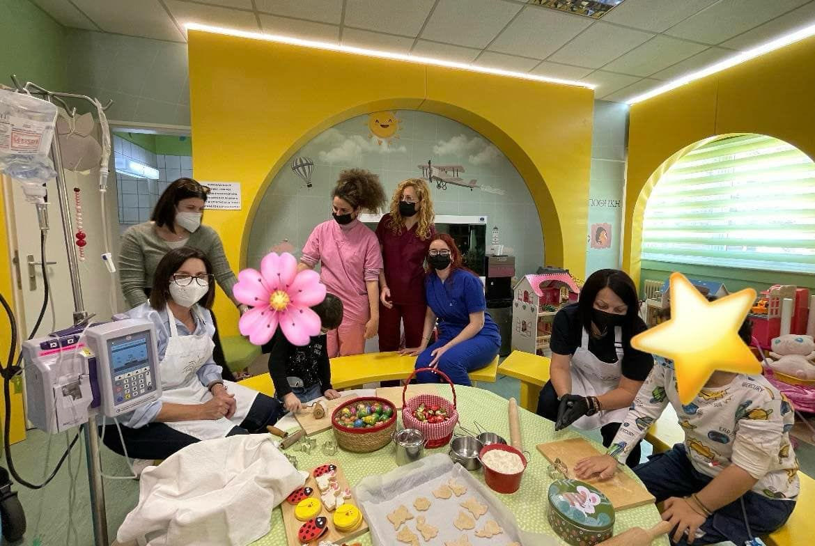 Οι στιγμές ήταν μοναδικές καθώς τους μοναδικούς πρωταγωνιστές τα ασθενή παιδιά συνόδευαν οι γονείς αλλά και οι γιατροί και οι νοσηλευτές και όλο το προσωπικό που καθημερινά τα στηρίζει στη μάχη που δίνουν για τη ζωή τους. Τα μικρά χεράκια ζύμωναν, έπλαθαν και διακοσμούσαν τα μπισκοτάκια τους με τέχνη και φαντασία ενώ καμάρωναν τα ζυμαρένια λαγουδάκια.