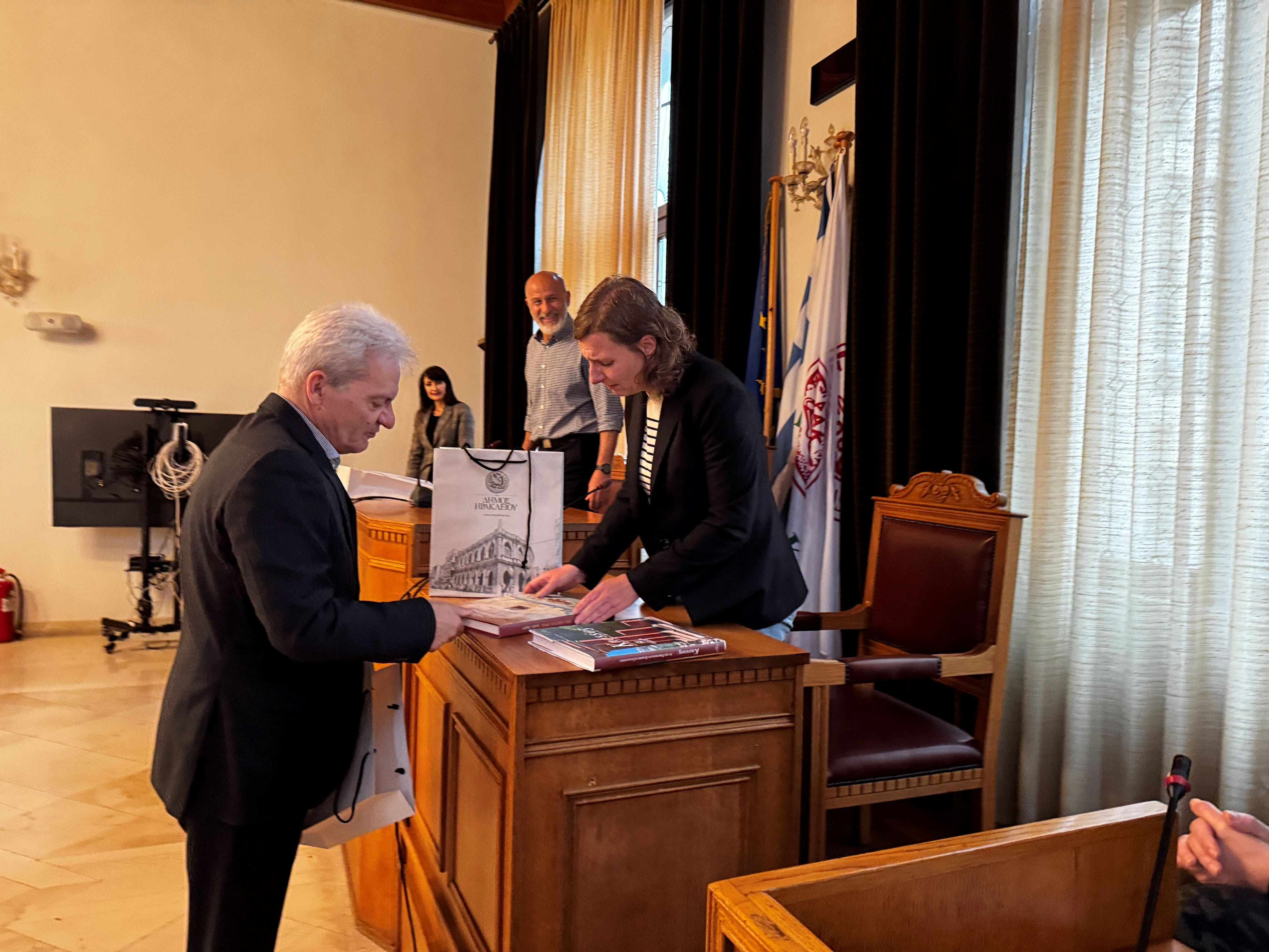 Στο πλαίσιο της συνάντησης, ο Δήμαρχος Ηρακλείου δώρισε στις εκπαιδευτικούς και στο σχολείο το βιβλίο The Cretan War 1645-1669 της Χρυσούλας Τζομπανάκη και το βιβλίο Knossos, At the Threshold of European Civilization του Γιάννη και της Έφης Σακελλαράκη.