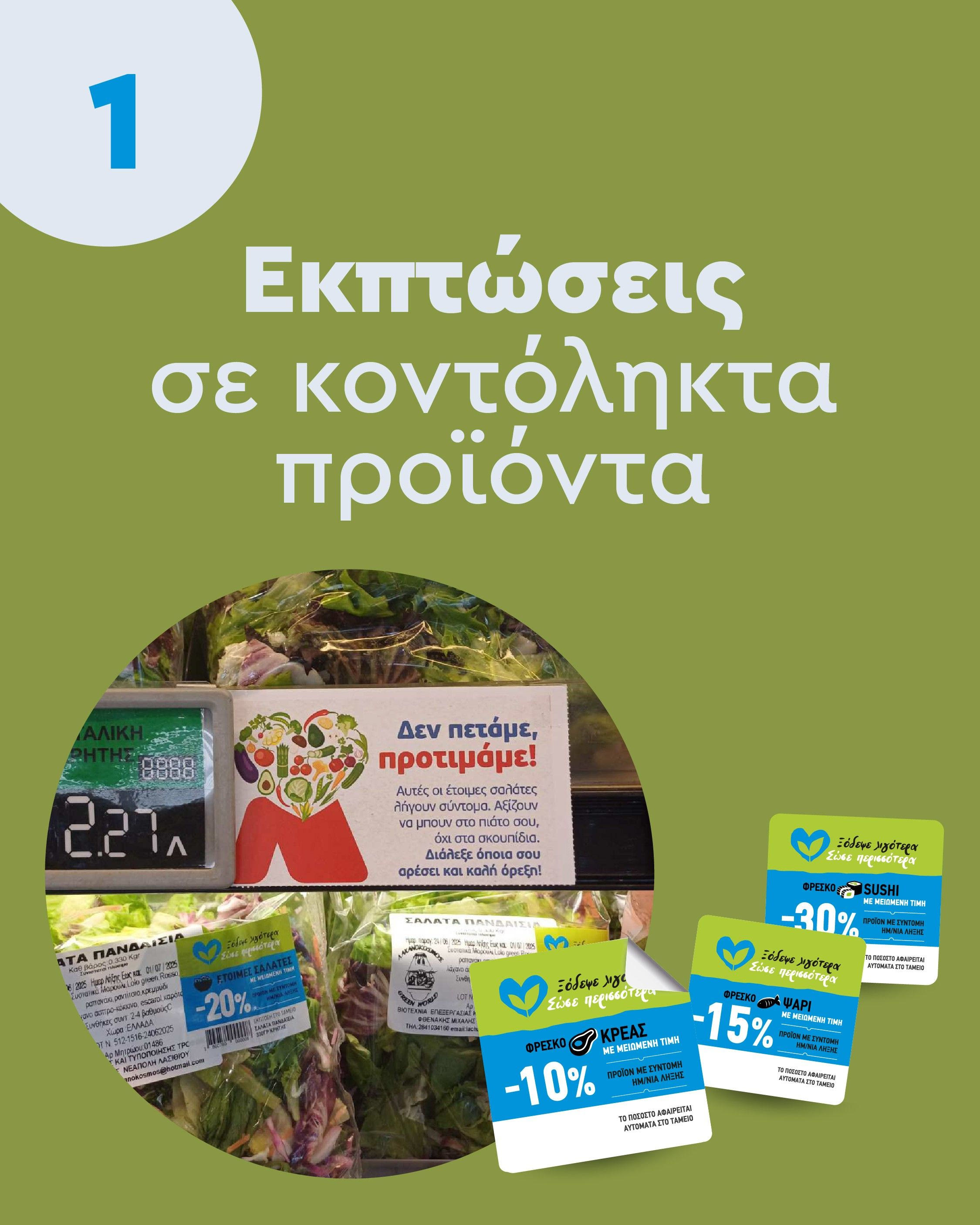 Ειδικά αυτοκόλλητα σε προϊόντα όπως ψάρια, sushi, ψητό κοτόπουλο και έτοιμα γεύματα. Δίνοντας τη δυνατότητα στους καταναλωτές να αγοράζουν προϊόντα με κοντινή ημερομηνία λήξης σε μειωμένες τιμές, συμβάλλουμε από κοινού στη μείωση της σπατάλης.