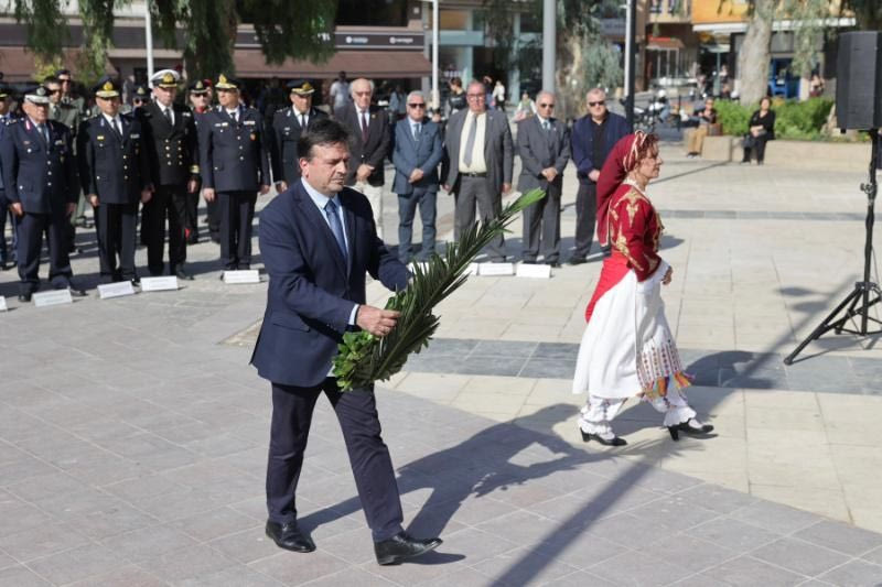 Στεφάνια κατέθεσαν ο βουλευτής της Ν.Δ. Ηρακλείου Μάξιμος Σενετάκης, ο Αντιπεριφερειάρχης Ηρακλείου Νίκος Συριγωνάκης, ο εκπρόσωπος του Δημάρχου Ηρακλείου, Αντιδήμαρχος Μανόλης Χαιρέτης, ο Ανώτερος Διοικητής Φρουράς Ηρακλείου ως εκπρόσωπος των Ενόπλων Δυνάμεων και των Σωμάτων Ασφαλείας, εκπρόσωποι εκπαίδευσης, κομμάτων, αποστράτων, φορέων.