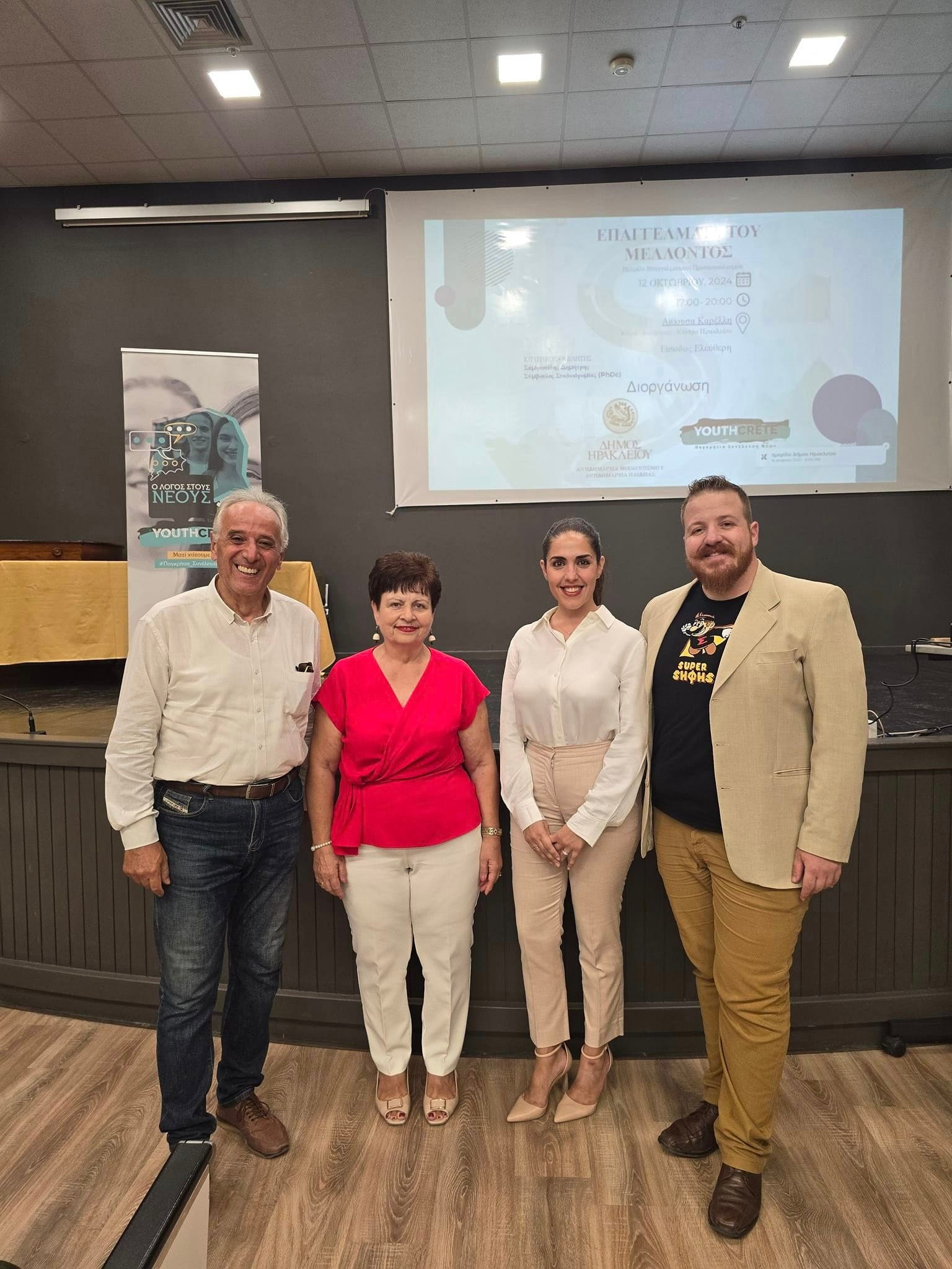 Με μεγάλη επιτυχία πραγματοποιήθηκε η ημερίδα με θέμα «Επαγγέλματα του Μέλλοντος» από το Δήμο Ηρακλείου μέσω των Αντιδημαρχιών Εθελοντισμού και Παιδείας σε συνεργασία με το Youth Crete, την Περιφέρεια Κρήτης και τη Θεοδώρα Κουτεντάκη.