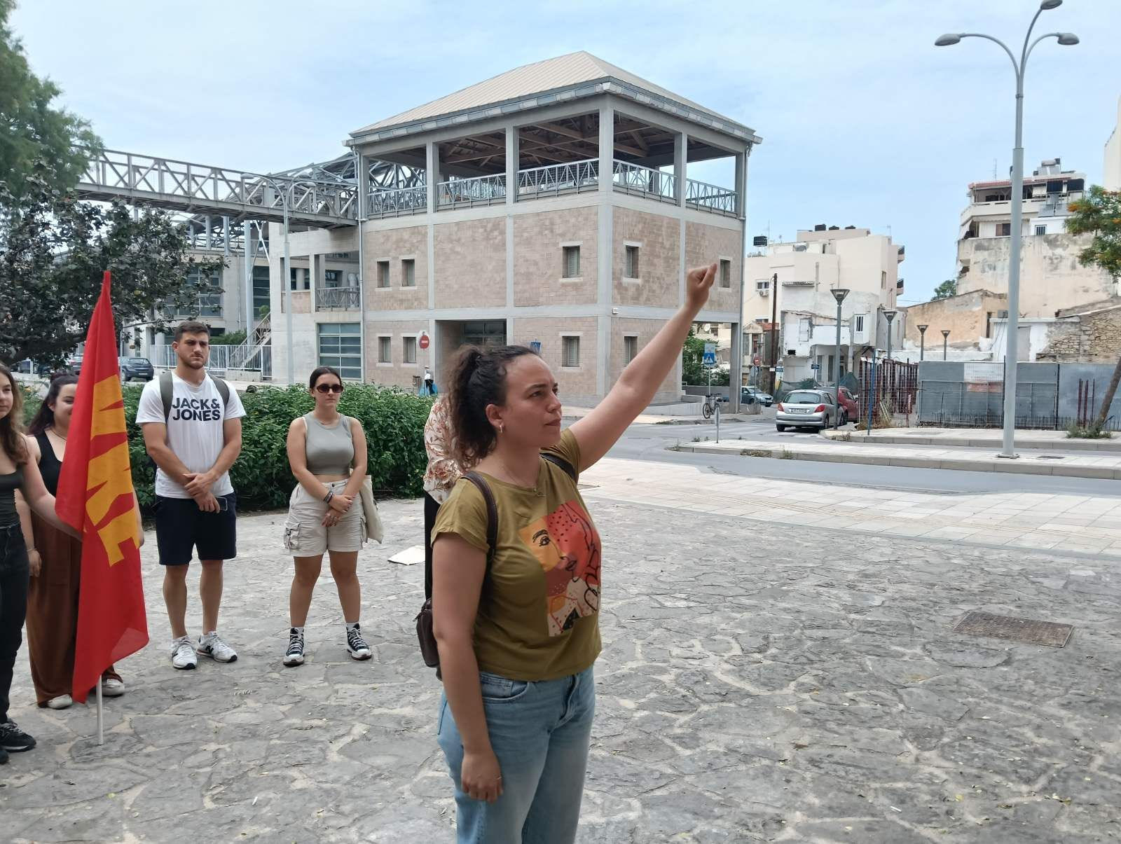 Η εκδήλωση ξεκίνησε με ένα σύντομο χαιρετισμό από τον Χάρη Φλουρή, μέλος της Επιτροπής Περιοχής Κρήτης και της Τομεακής Επιτροπής Ηρακλείου του ΚΚΕ, που καλωσόρισε του παρευρισκόμενους και μεταξύ άλλων τόνισε ότι: «Στόχος της συγκεκριμένης παραγωγής της ΚΕ είναι όσοι και όσες αναζητούν την ιστορική αλήθεια, καθώς και τις απαντήσεις για το τι χρειάζεται να κάνει σήμερα ο λαός απέναντι στην επικίνδυνη κλιμάκωση του ιμπεριαλιστικού πολέμου και τη βαθύτερη εμπλοκή της χώρας μας σε αυτόν, να έρθουν σε επαφή με τα πραγματικά ιστορικά γεγονότα και τα πολύτιμα συλλογικά συμπεράσματα που έχει εξάγει το Κόμμα μας.