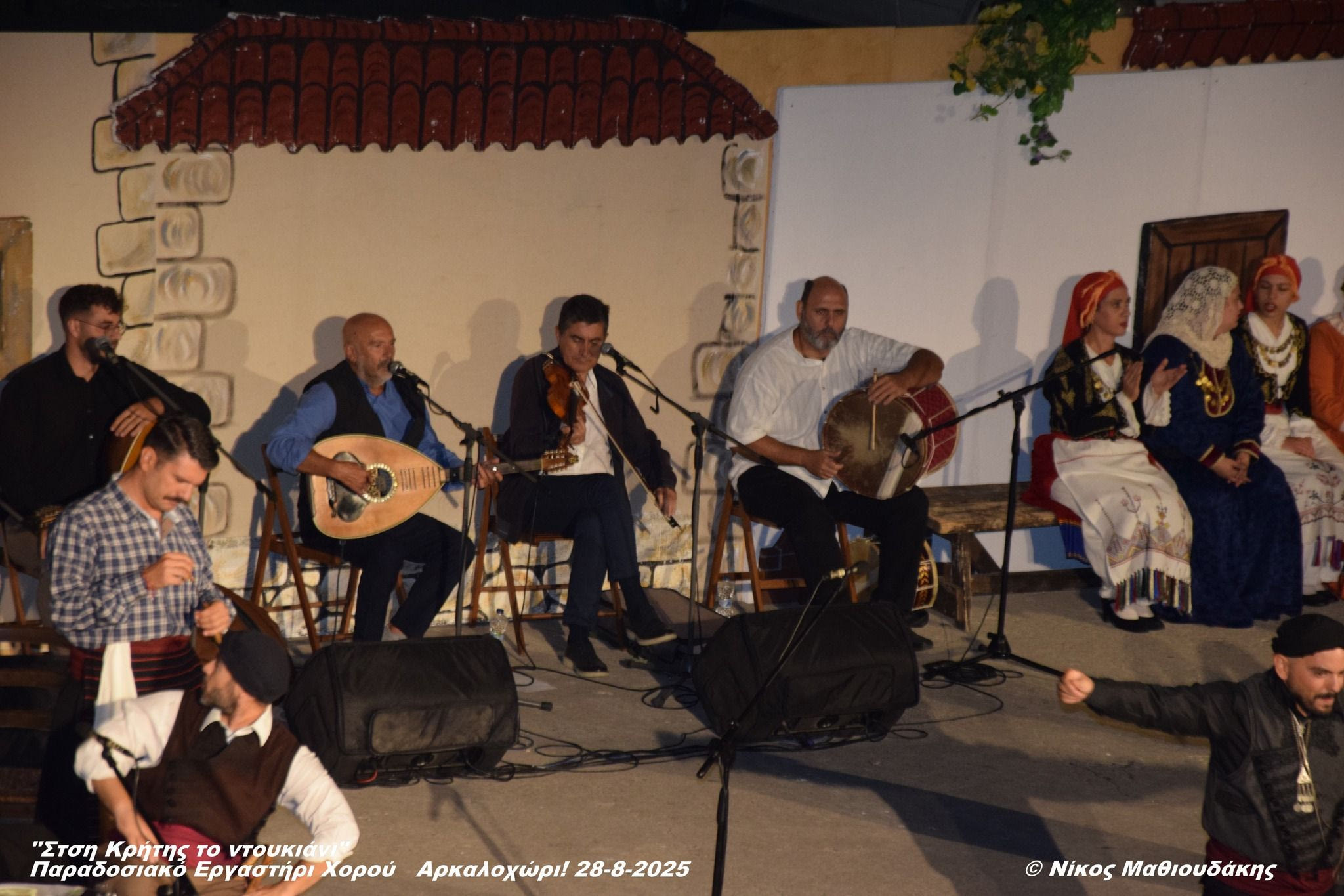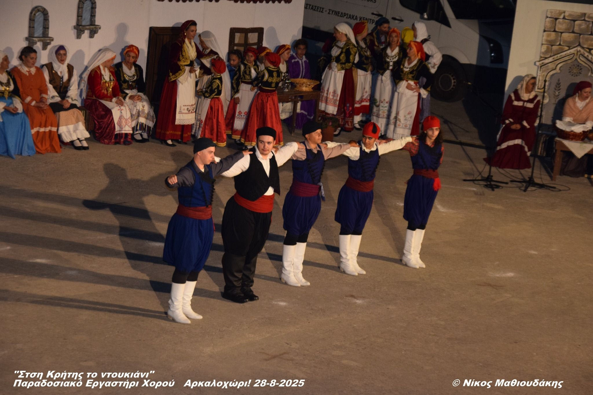 Μια μοναδική βραδιά παράδοσης, γεμάτη μουσική, χορό και θέατρο, είχαν την ευκαιρία να απολαύσουν όσοι βρέθηκαν την Πέμπτη 28 Αυγούστου 2025, στο Ανοιχτό Θέατρο Αρκαλοχωρίου, στην παράσταση «Στση Κρήτης το ντουκιάνι».