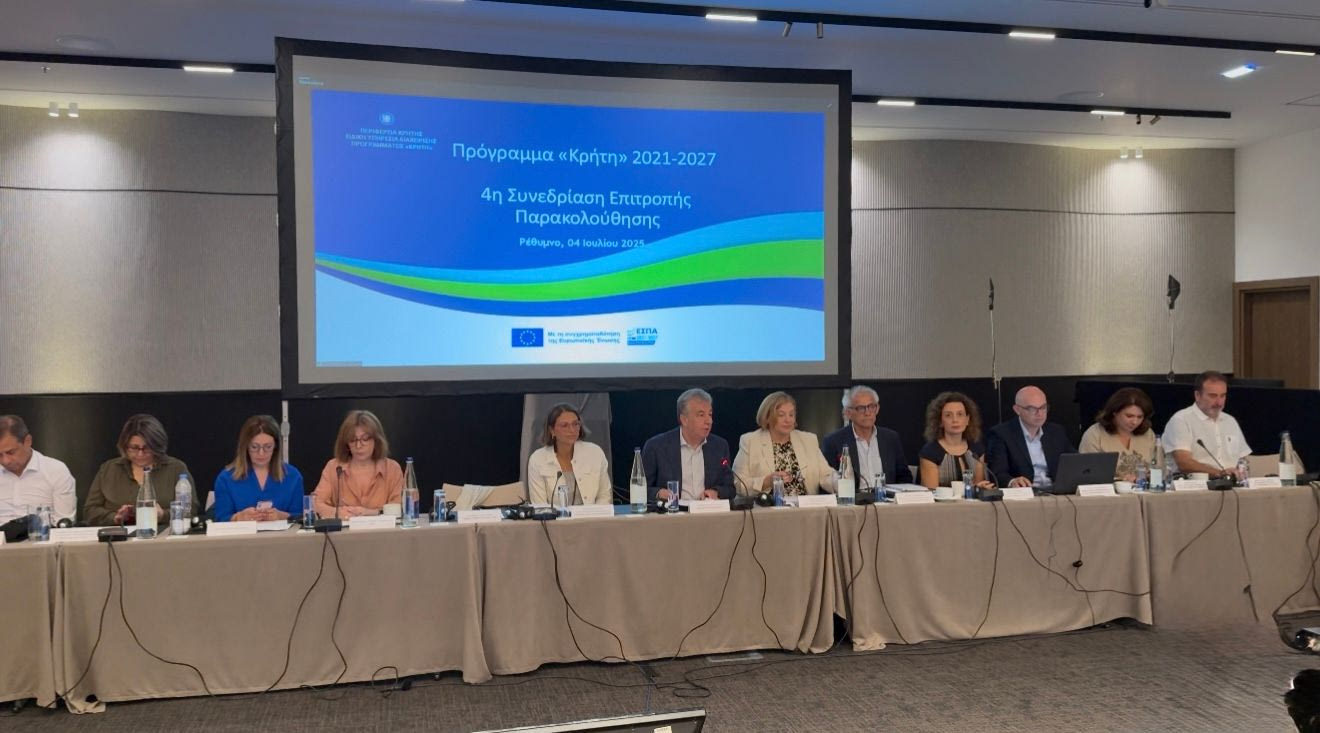 Με τη συμμετοχή θεσμικών εκπροσώπων της Αυτοδιοίκησης, των εθνικών αρχών, επιτελικών δομών του ΕΣΠΑ και της Ευρωπαϊκής Επιτροπής, πραγματοποιήθηκε σήμερα στο Ρέθυμνο η 4η Συνεδρίαση της Επιτροπής Παρακολούθησης του Περιφερειακού Προγράμματος «ΚΡΗΤΗ 2021-2027».