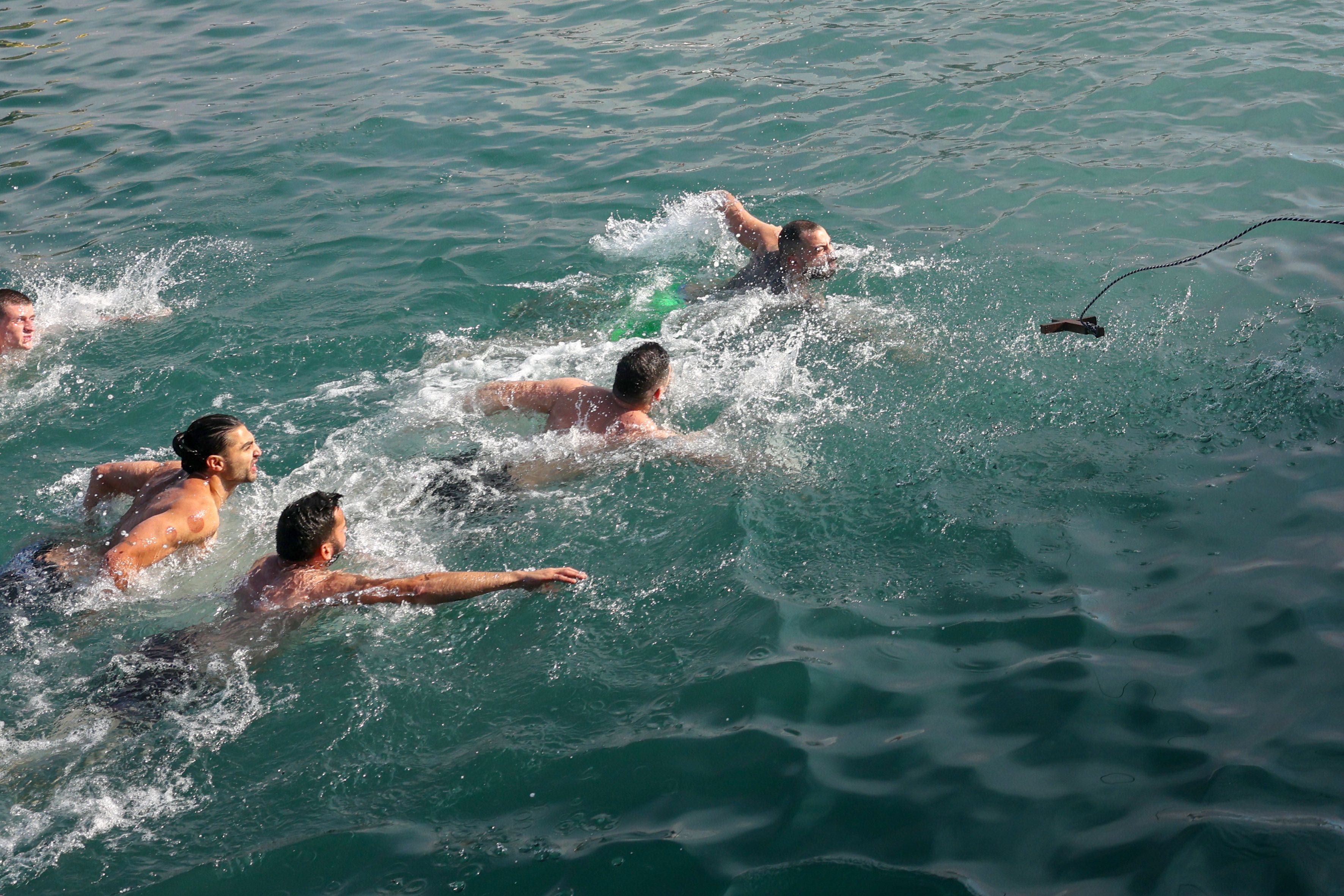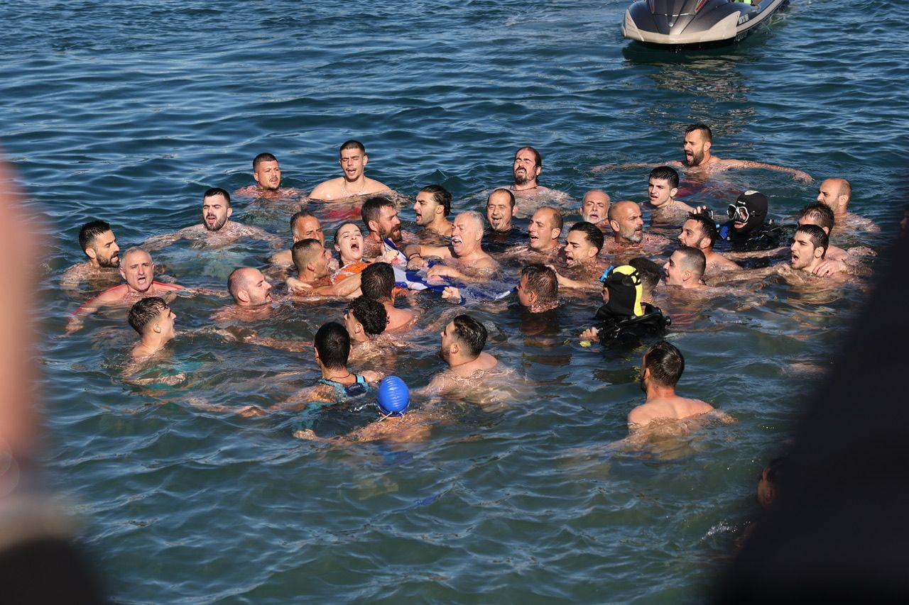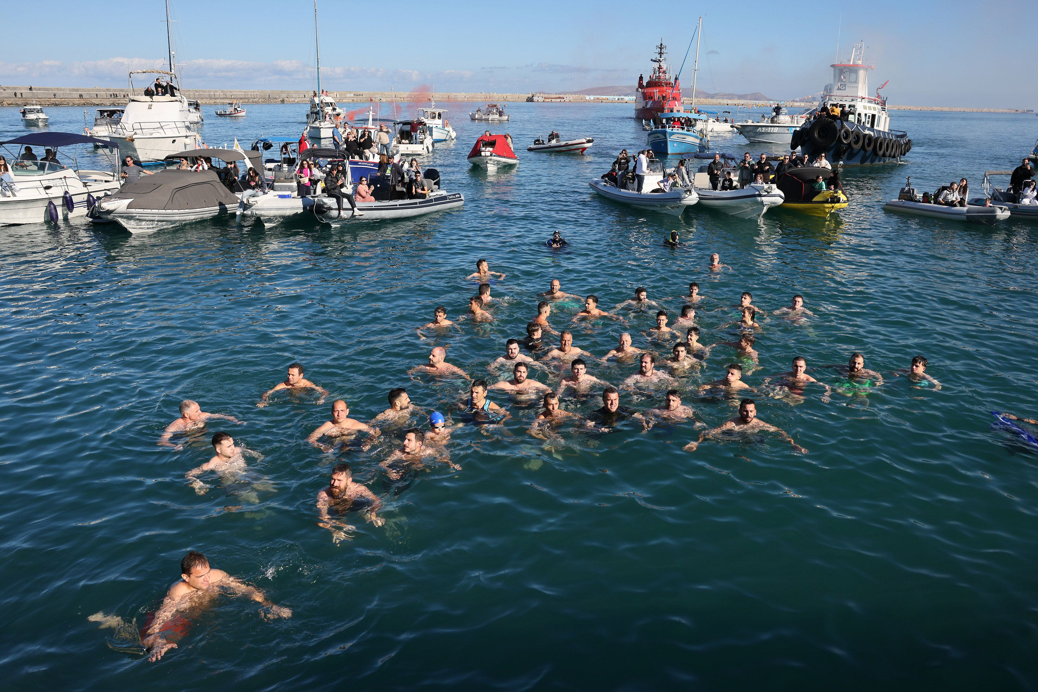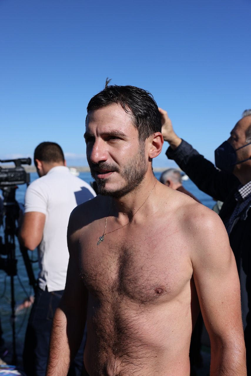 Περισσότεροι από πενήντα «βουτηχτάδες» έπεσαν στα νερά του λιμανιού, για να πιάσουν τον σταυρό, με τους φορείς και τους πιστούς που παραβρέθηκαν στο λιμάνι, να χειροκροτούν θερμά.
