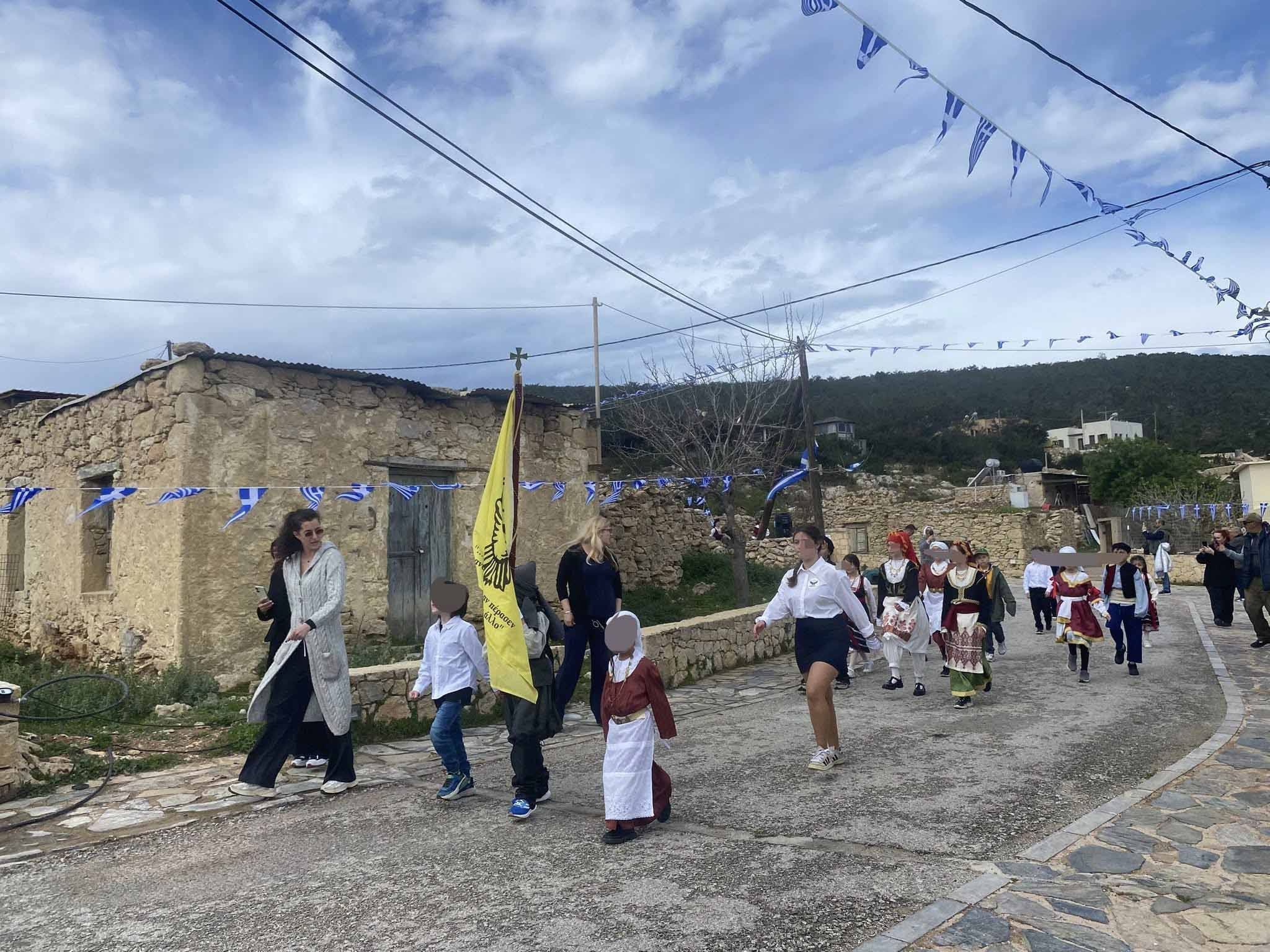 Μία παρέλαση που κάθε χρόνο πραγματοποιείται με ελάχιστους μαθητές ή καθόλου όπως φέτος, αφού στο νησί δεν υπάρχει ούτε ένας μαθητής.