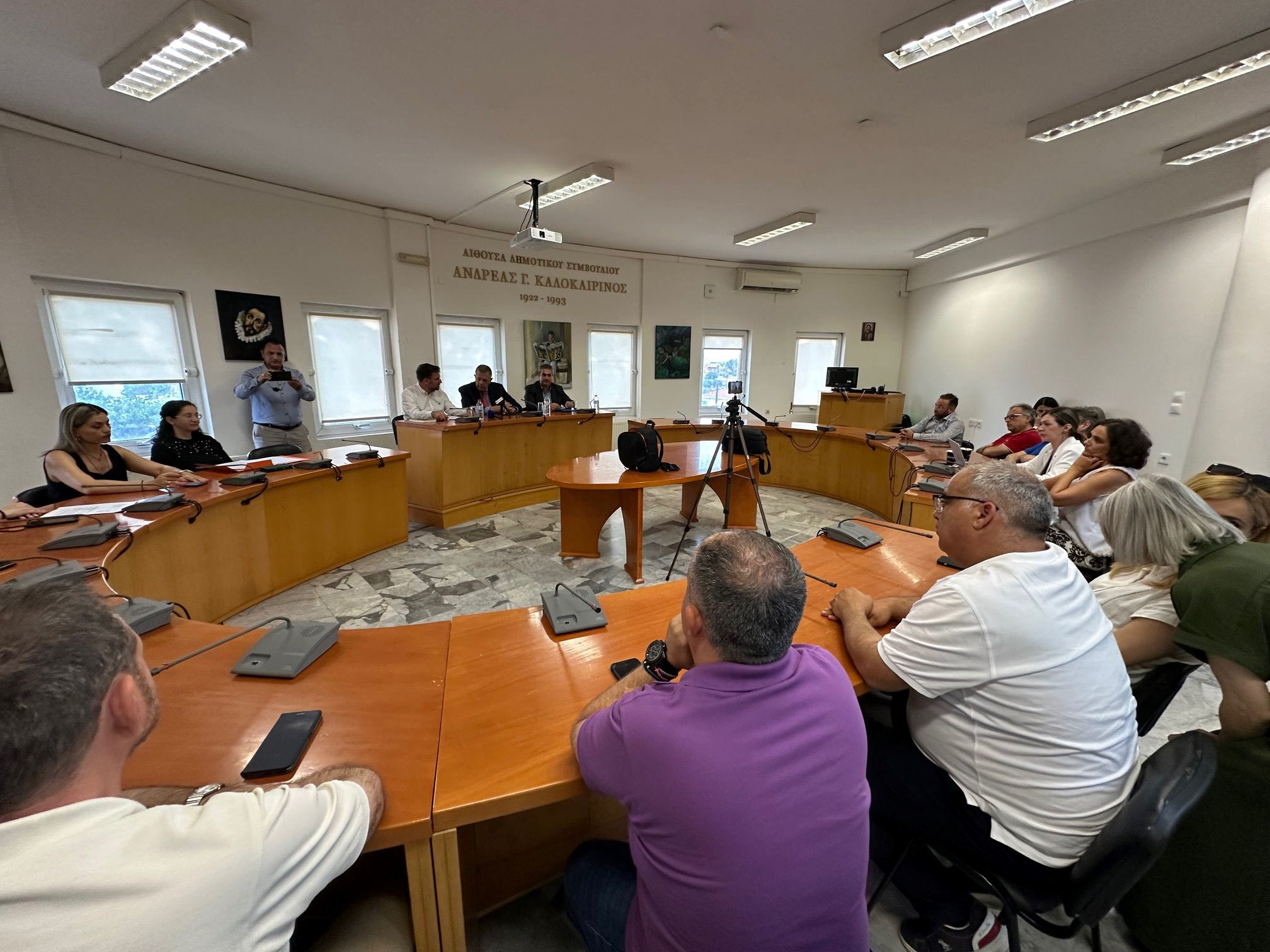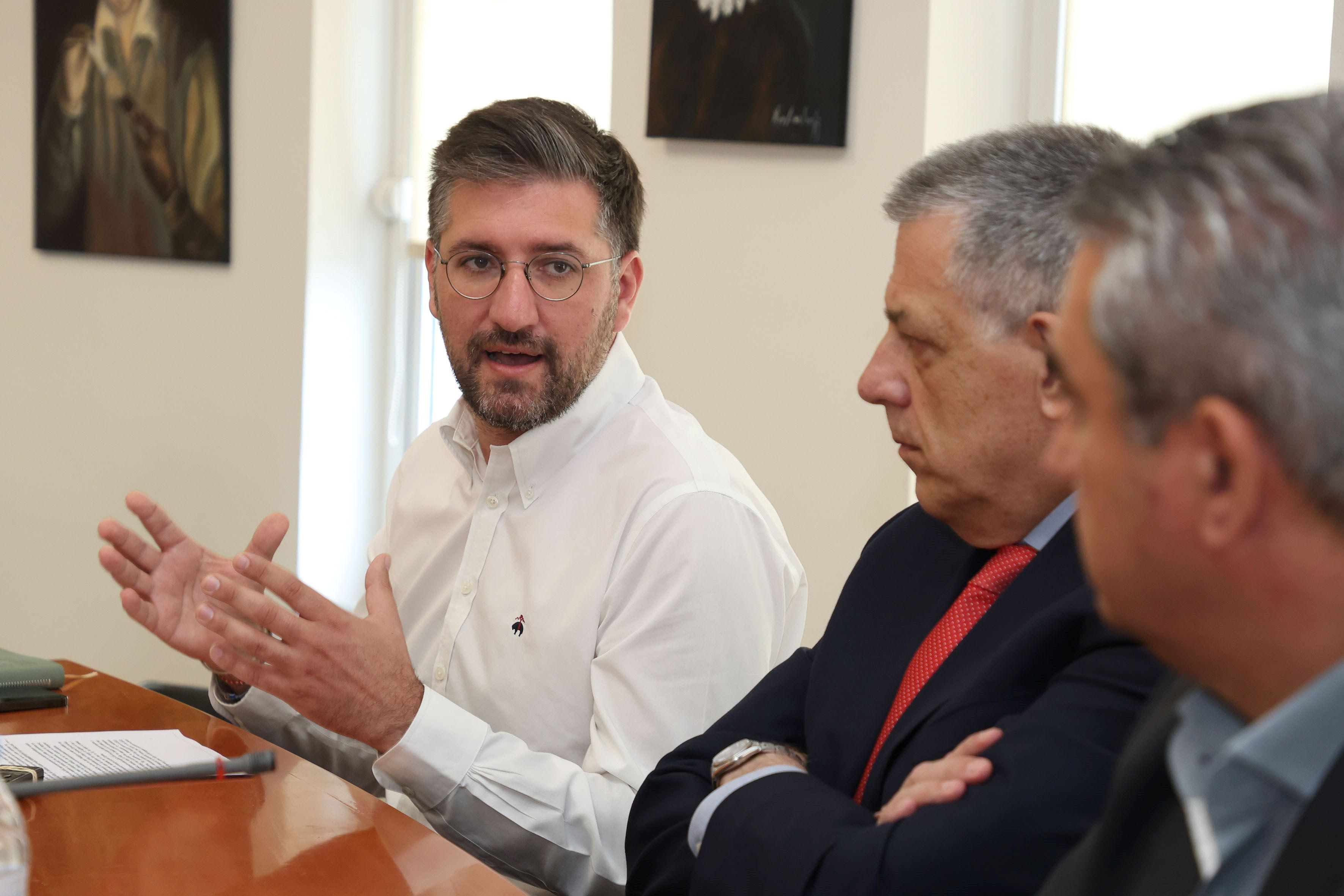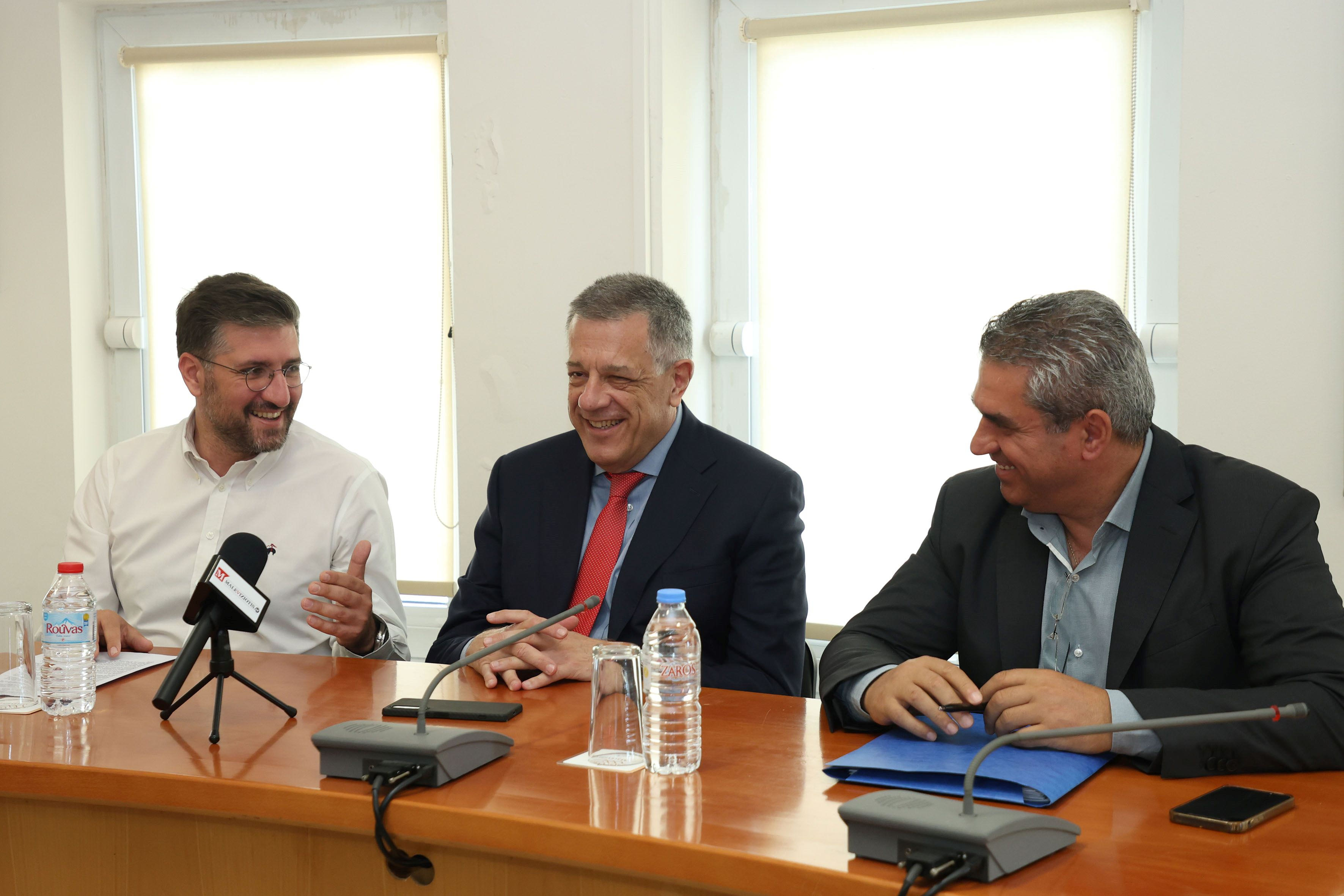 Δήμαρχος Μαλεβιζίου Μενέλαος Μποκέας στον υφυπουργό Υποδομών Νίκο Ταχιάο κατά την επίσκεψη του στο Δημαρχείο.