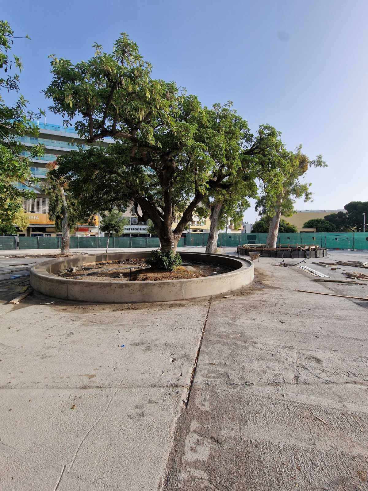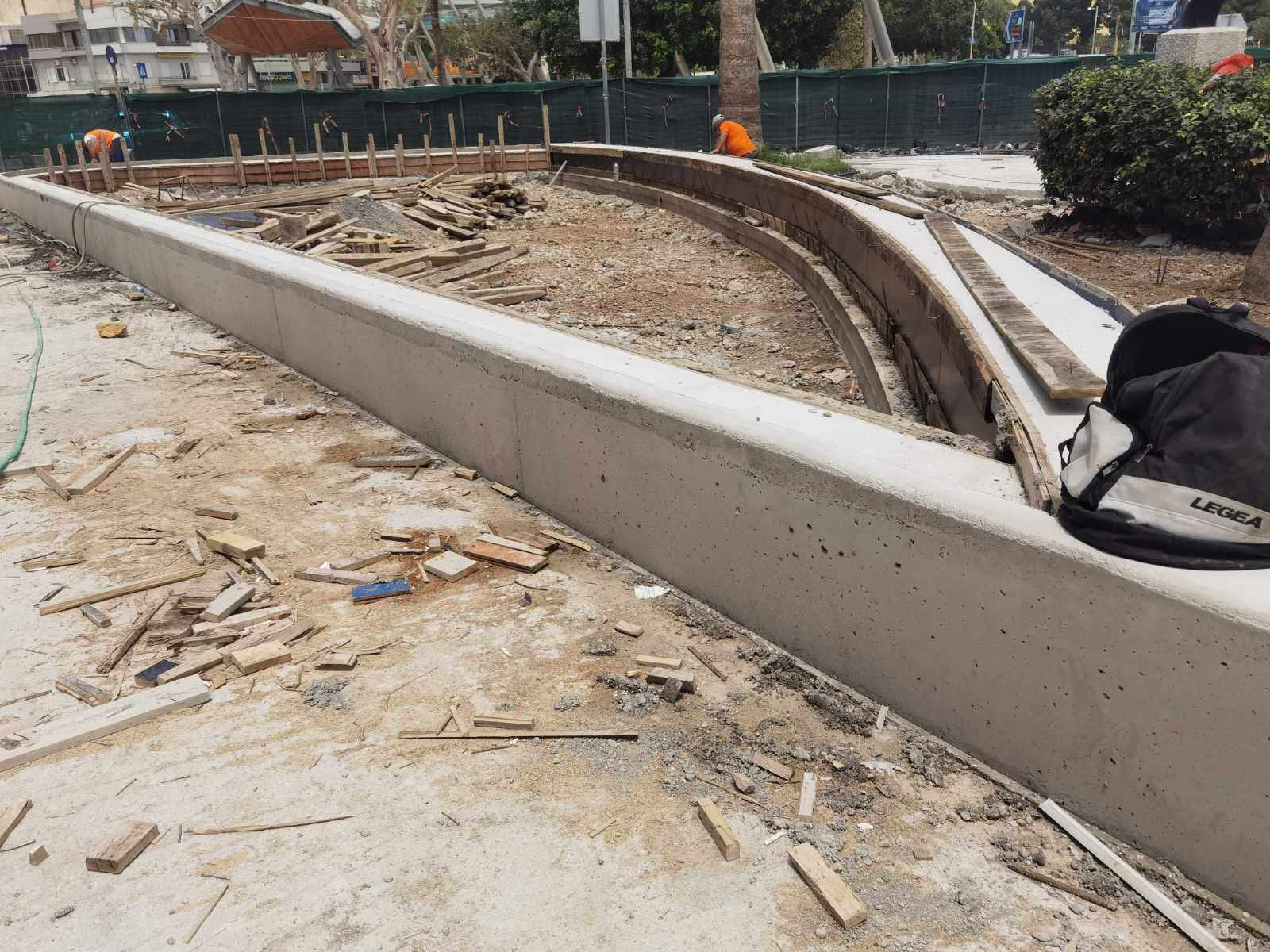 Σε αυτή τη φάση προχωρούν οι πλακοστρώσεις, ενώ παράλληλα τοποθετούνται και τα παγκάκια που έχουν προγραμματιστεί να εγκατασταθούν γύρω από τα δέντρα.