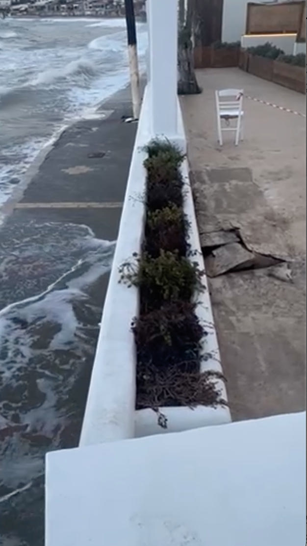 Το ίδιο συμβαίνει και με το στύλο της ΔΕΗ που κολυμπά στο νερό της θάλασσας, καθώς έχει τεράστια εσωτερική υποσκαφή. Οι κάτοικοι της περιοχής είναι ανάστατοι καθώς φοβούνται ότι η θάλασσα με 5-6 μποφόρ θα πνίξει όλες τις παραθαλάσσιες κατασκευές και θα προκληθούν τεράστιες καταστροφές.