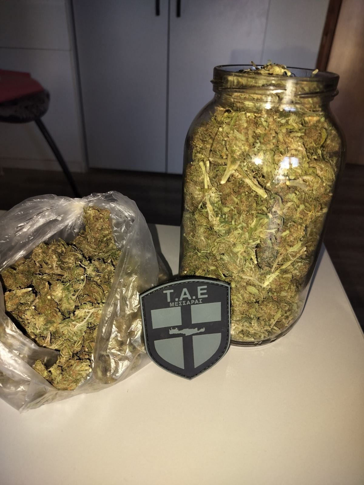 Οι αστυνομικοί του Τμήματος Αστυνομικών Επιχειρήσεων Μεσσαράς πραγματοποίησαν έρευνα στην οικία του σε περιοχή του Δήμου Φαιστού όπου μέσα σε γυάλινα βάζα βρήκαν και κατέσχεσαν ποσότητες κάνναβης συνολικού βάρους 228,4 γραμμαρίων, τα οποία και κατασχέθηκαν.
