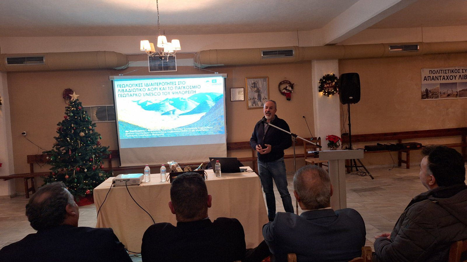 Στη συνέχεια, ο Δρ. Χαράλαμπος Φασουλάς- Γεωλόγος και Πρόεδρος του «Δικτύου Ιδαίων», παρουσίασε με εύγλωττο τρόπο “Το ταξίδι της Κρήτης” που αφορά στον σχηματισμό του νησιού, του Ψηλορείτη και άλλων γεωμορφολογικών στοιχείων της περιοχής μας. Τέλος, η πολυαναμενόμενη παρουσίαση της νέας επιστημονικής ανακάλυψης, για το γεώτοπο των παγετωνικών αποθέσεων Μυγερού “έκλεψε” τις εντυπώσεις!