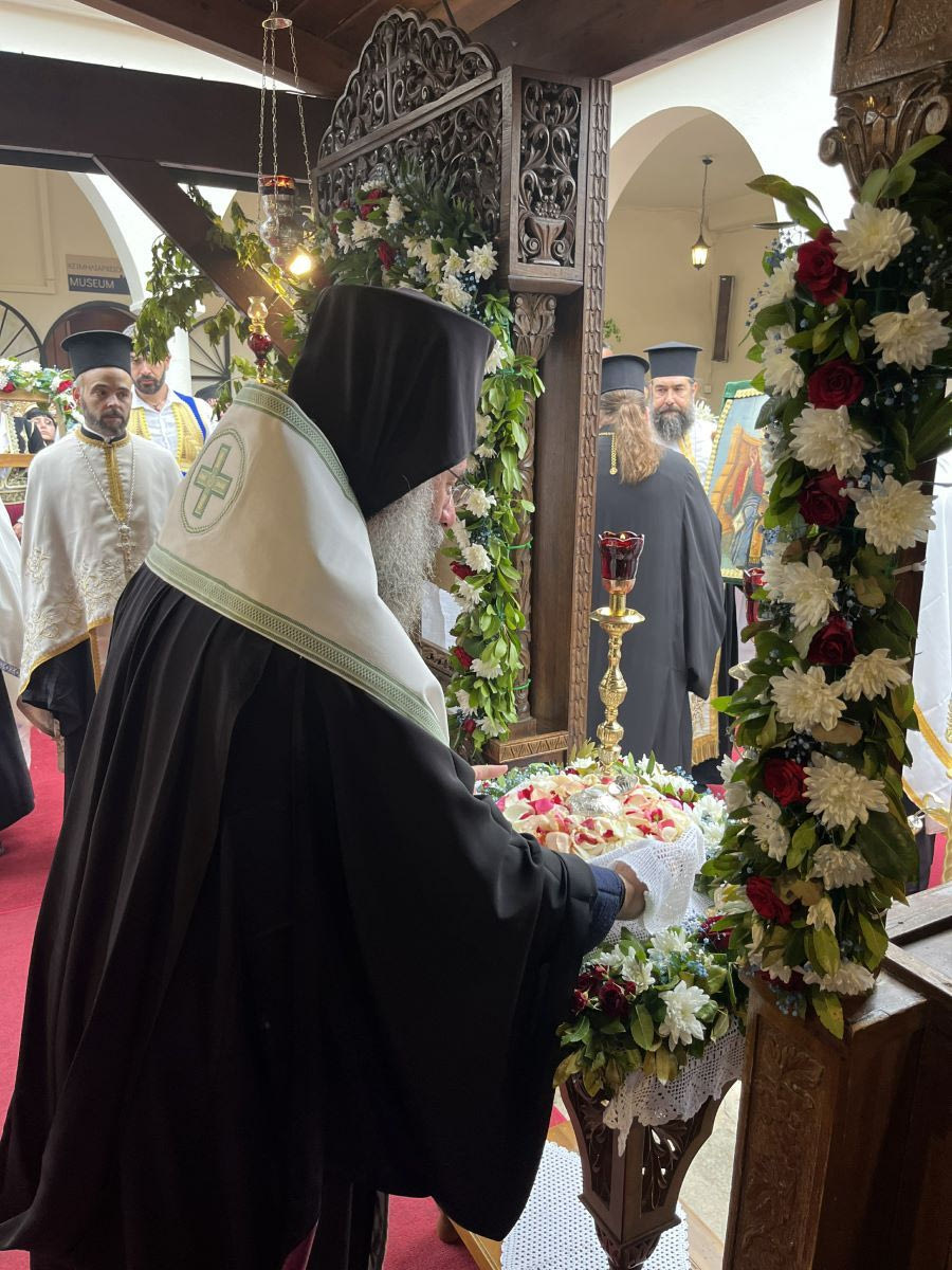 Επίσης, ο Σεβασμιώτατος συνεχάρη τον Εφημέριο της Ενορίας Μυριοκεφάλων, Αιδεσιμολ. Πρωτοπρεσβύτερο Θεόδωρο Σηφάκη, και όλους τους καλούς συνεργούς του στο εκκλησιαστικό έργο, για την άρτια διοργάνωση και την όλη επιμέλεια του εορταστικού τριημέρου, καθώς τα ιερά σεβάσματα παρέμειναν στην Παναγία των Μυριοκεφάλων μέχρι το απόγευμα της Δευτέρας, 27ης Μαΐου 2024.