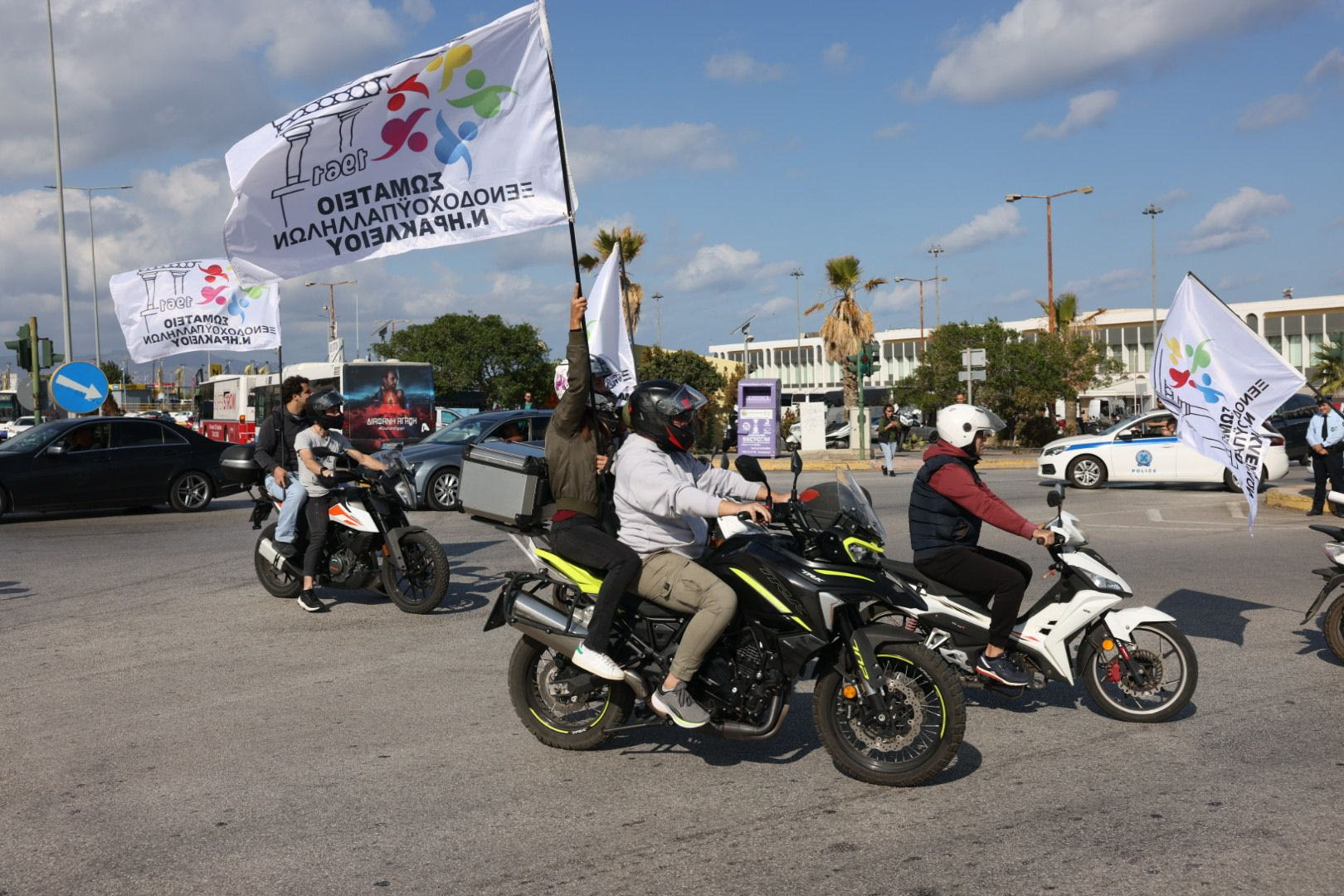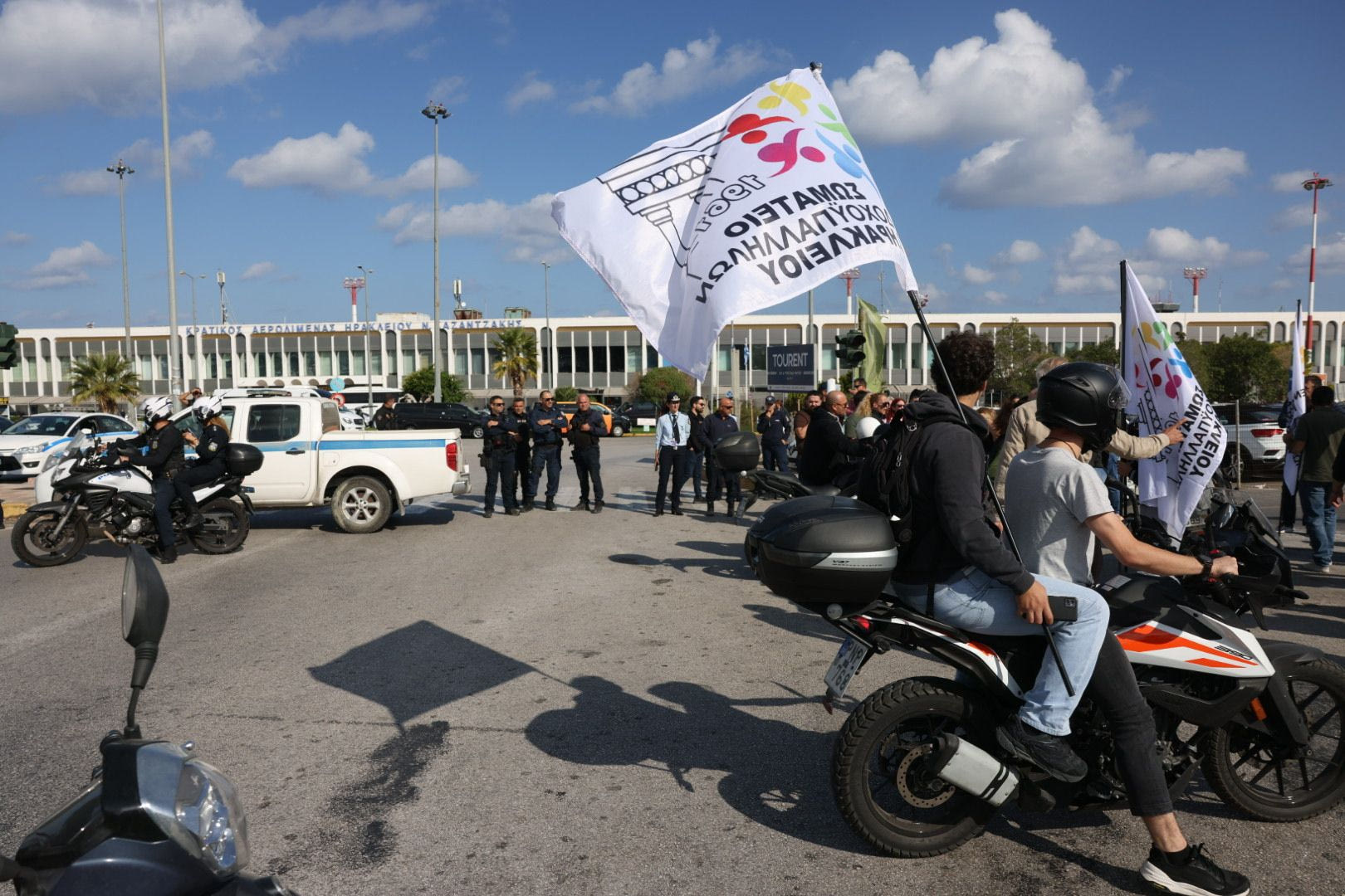 Οι εργαζόμενοι στον στον τουρισμό και στον επισιτισμό συγκεντρώθηκαν στις 11 το πρωί της Τετάρτης στο Εργατικό Κέντρο Ηρακλείου και στη συνέχεια πραγματοποίησαν μηχανοκίνητη πορεία στο αεροδρόμιο.
